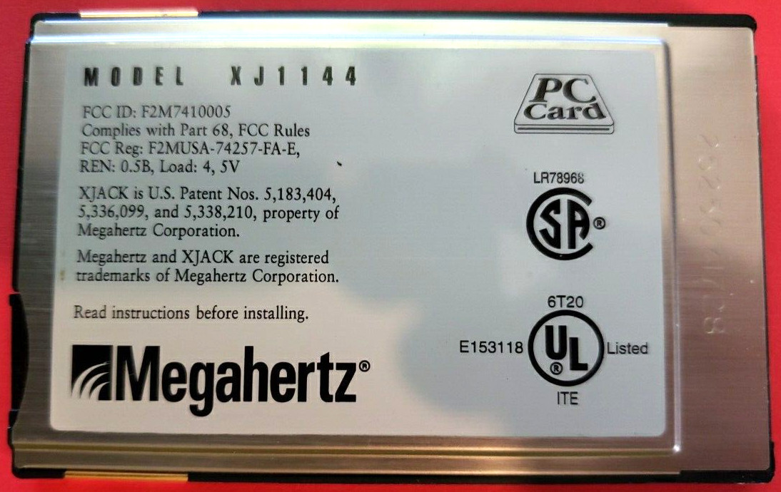 MEGAHERTZ PCMCIA 2.0 Data/Fax Modem w/ XJack Card 14,400/14,400bps XJ1144 Untest