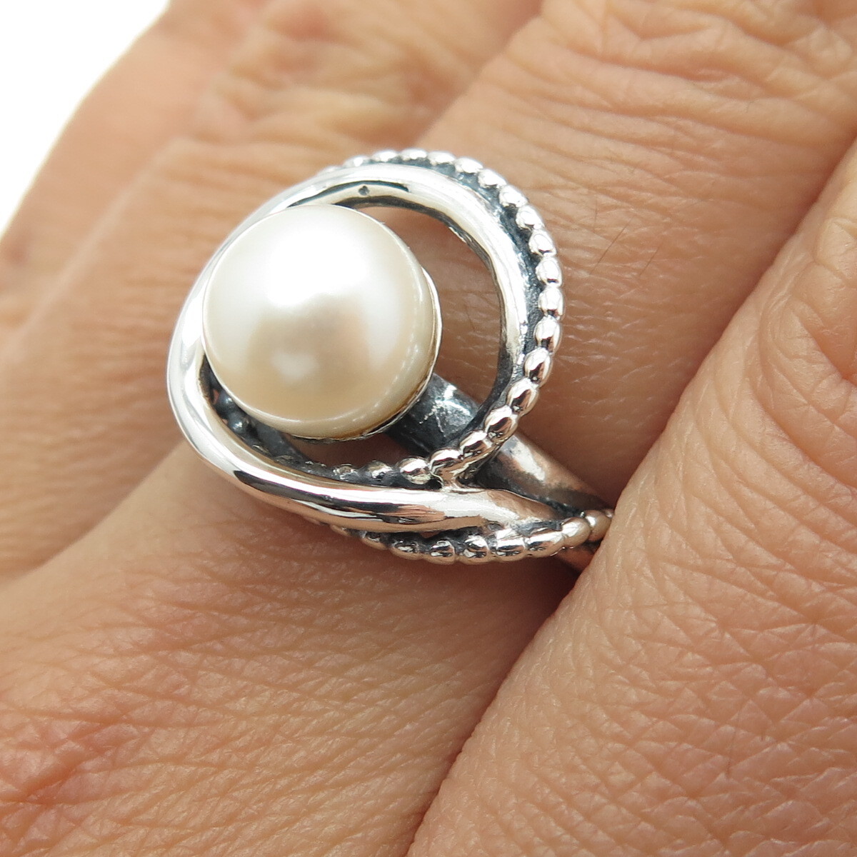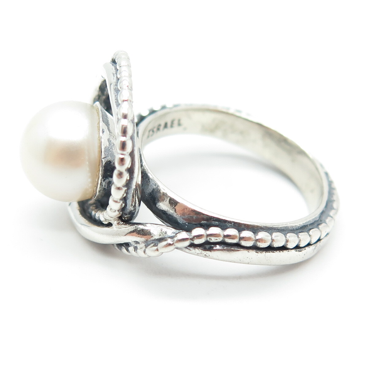 OR PAZ 925 Sterling Silver Vintage Israel Real Pearl Ring Size 7.25