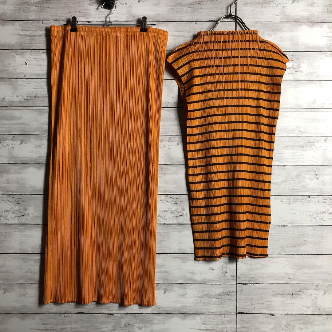 ISSEY MIYAKE Set up Orange sleevelss Shirt Skirt Size Free 1