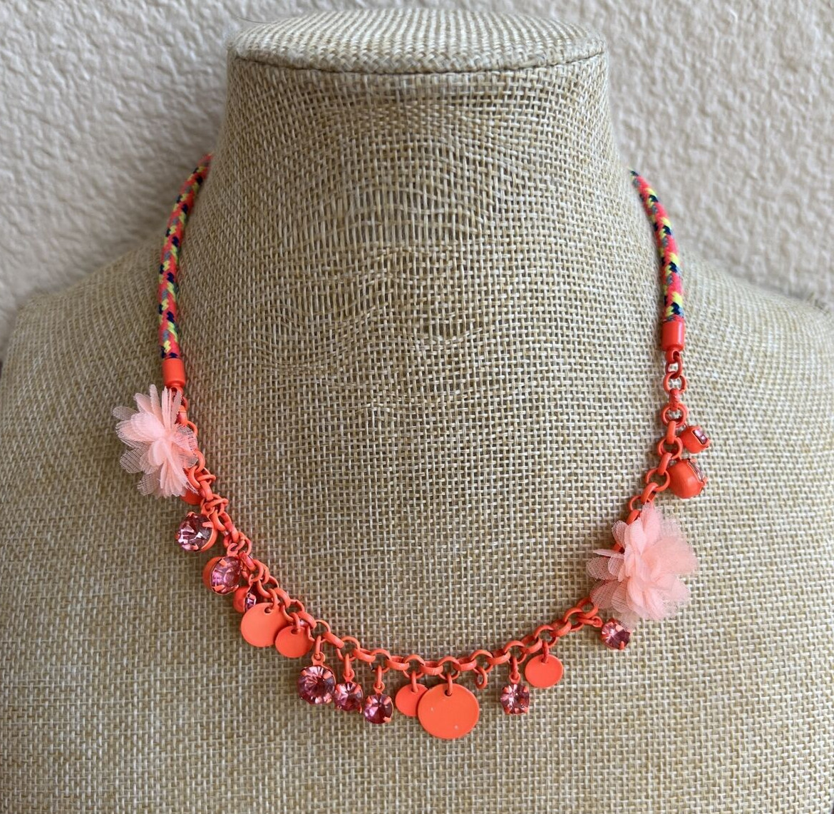 J.Crew Crewcuts Orange Bead Necklace With Chains And Flowers 16