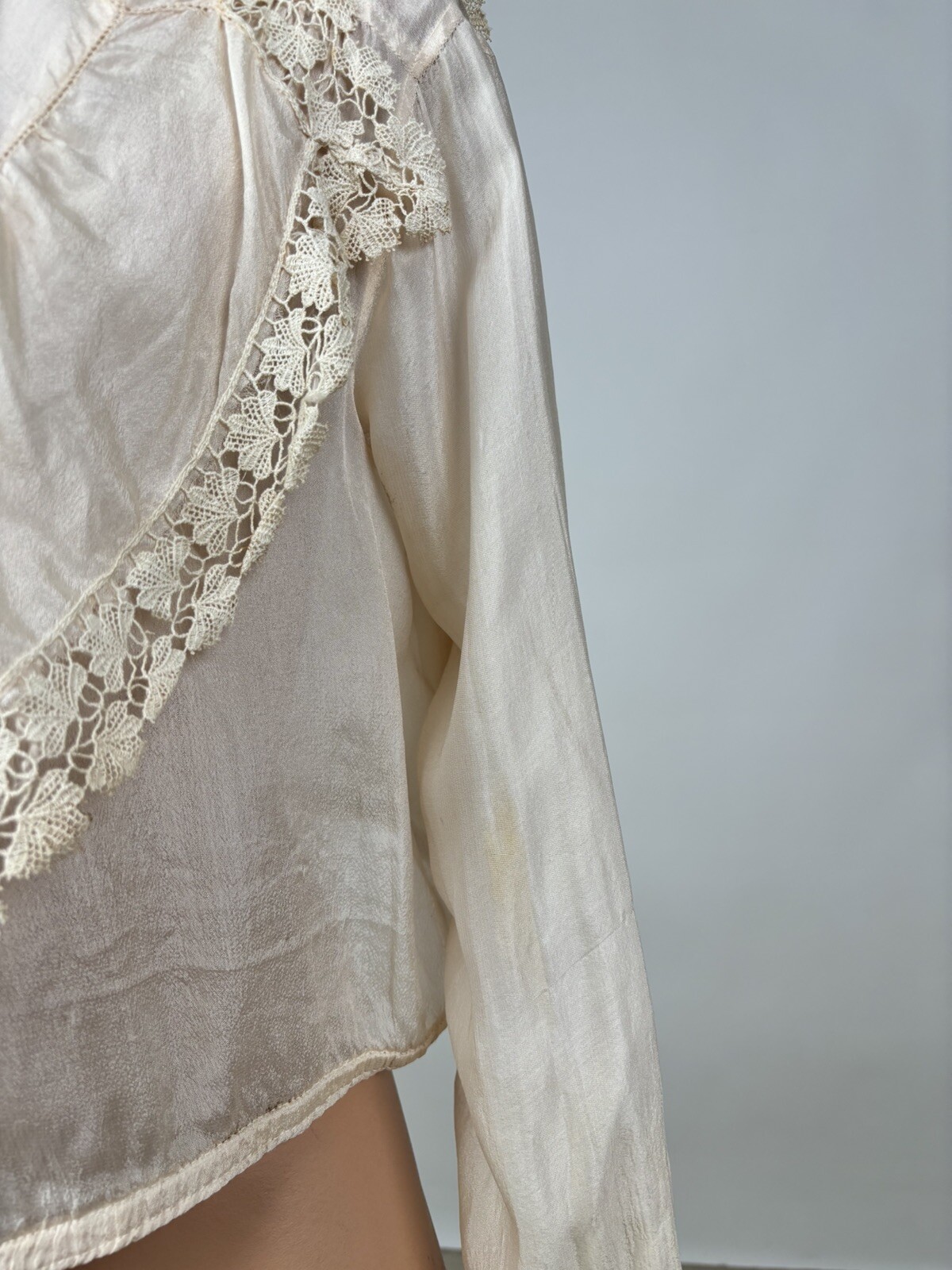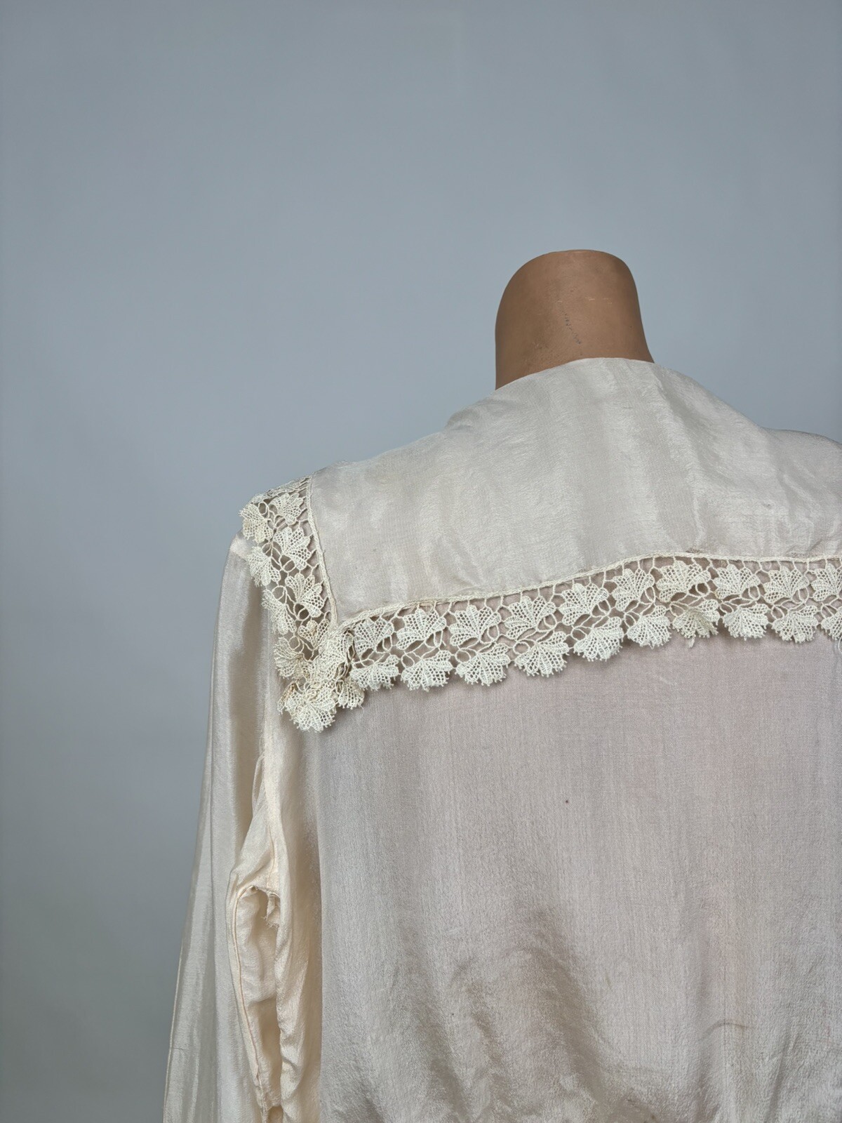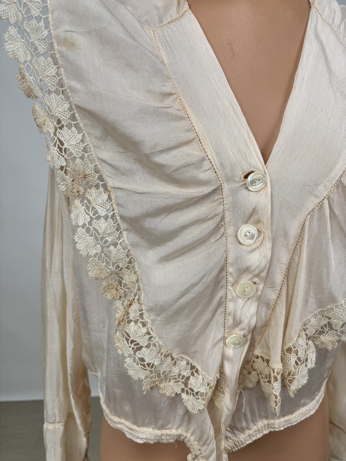 Antique Silk Victorian pale pink lace collar ladies blouse shirt long sleeve