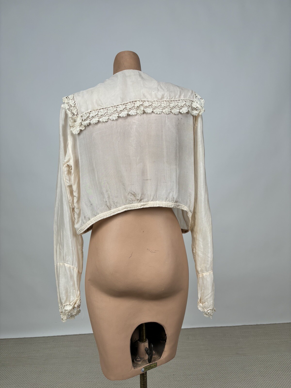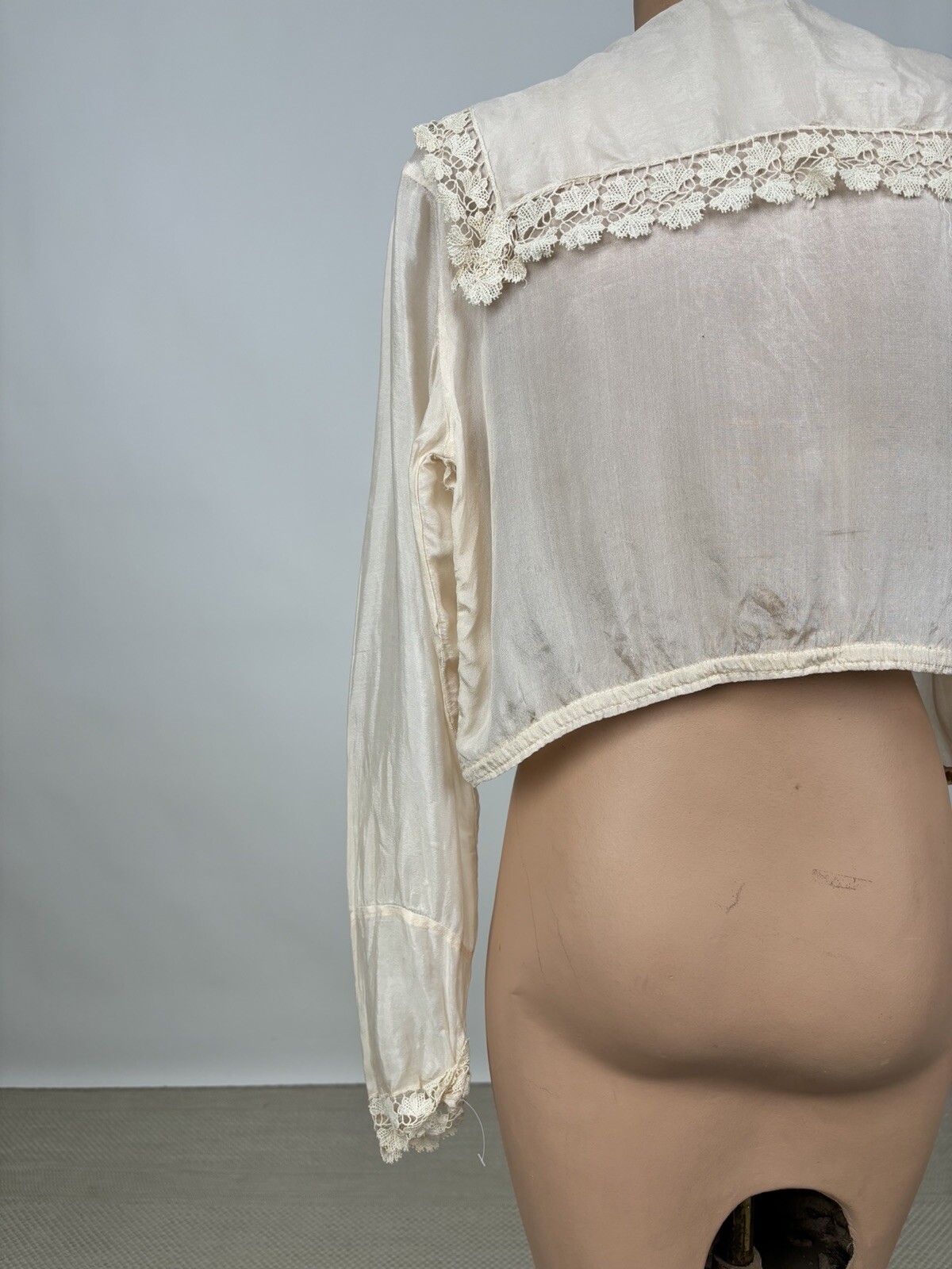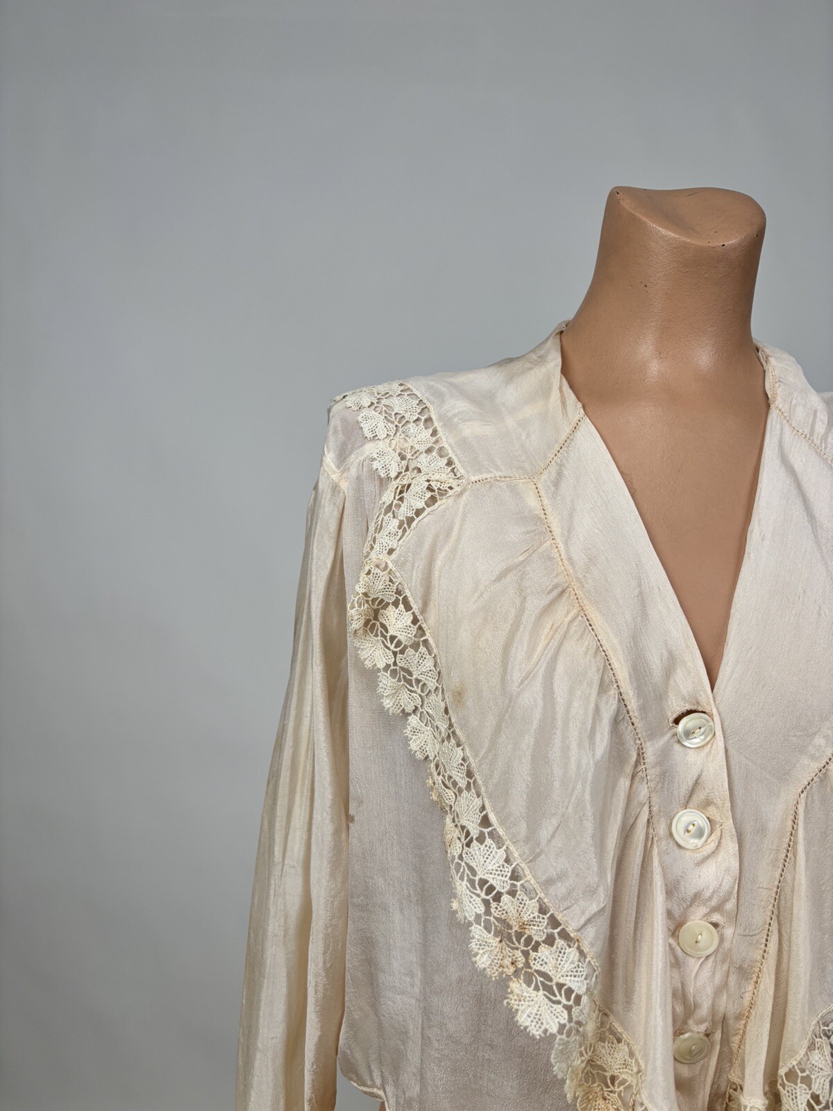 Antique Silk Victorian pale pink lace collar ladies blouse shirt long sleeve