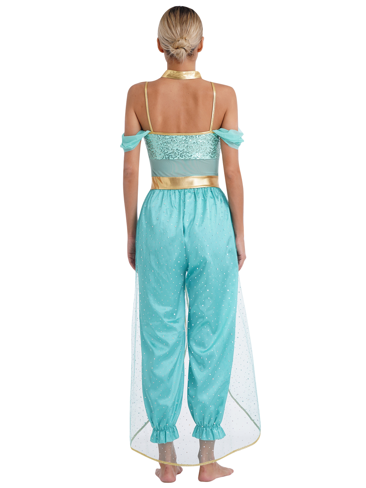 как выглядит Womens Belly Dance Halloween Arabian Princess Cospaly Jumpsuits Shiny Choker фото