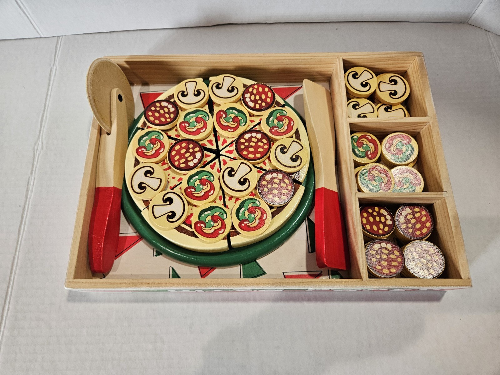 Melissa Doug Wooden Pizza Party Play Set Mix Match Toppings