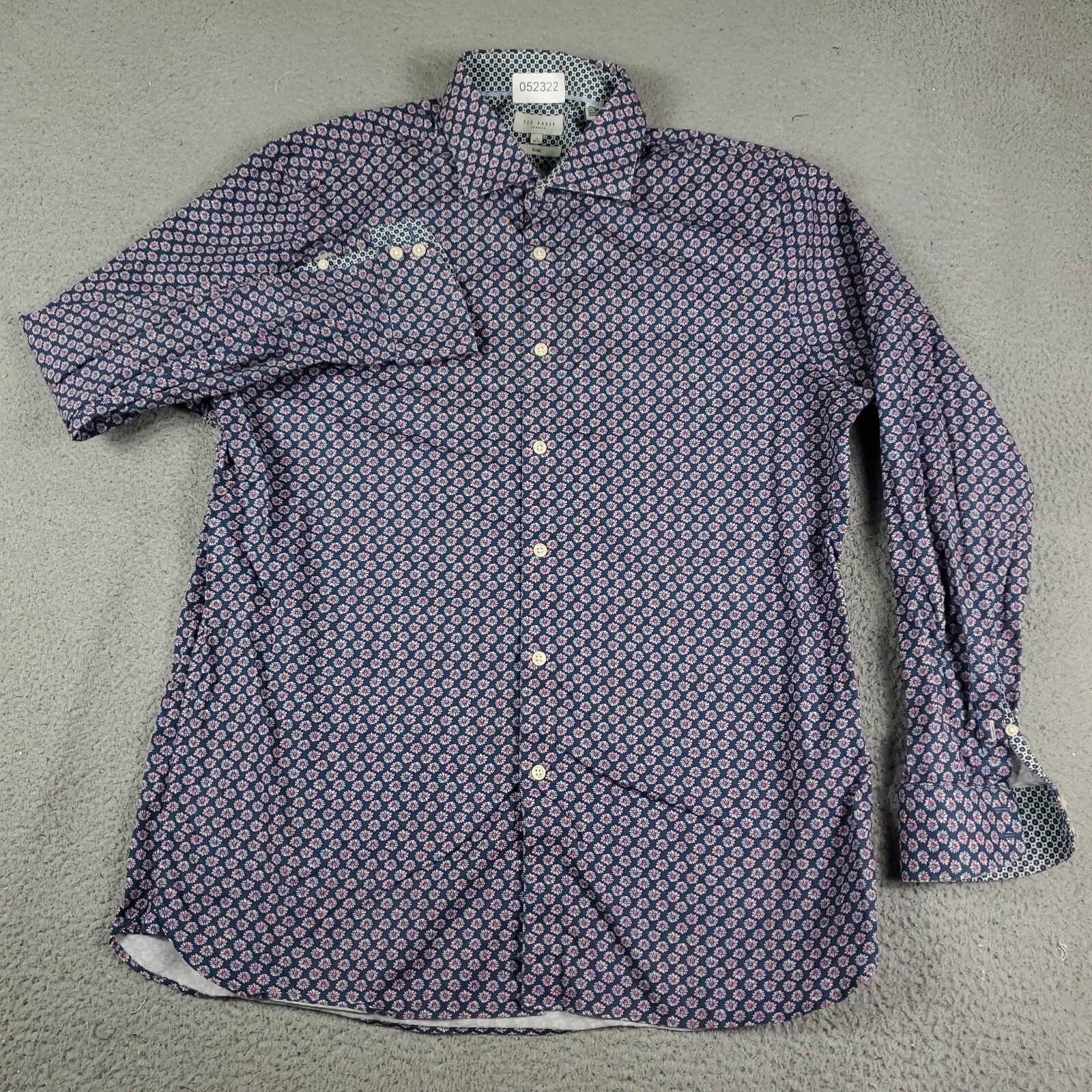 Ted Baker London Shirt Mens 17 Blue Floral Dress Button Up Long Sleeve