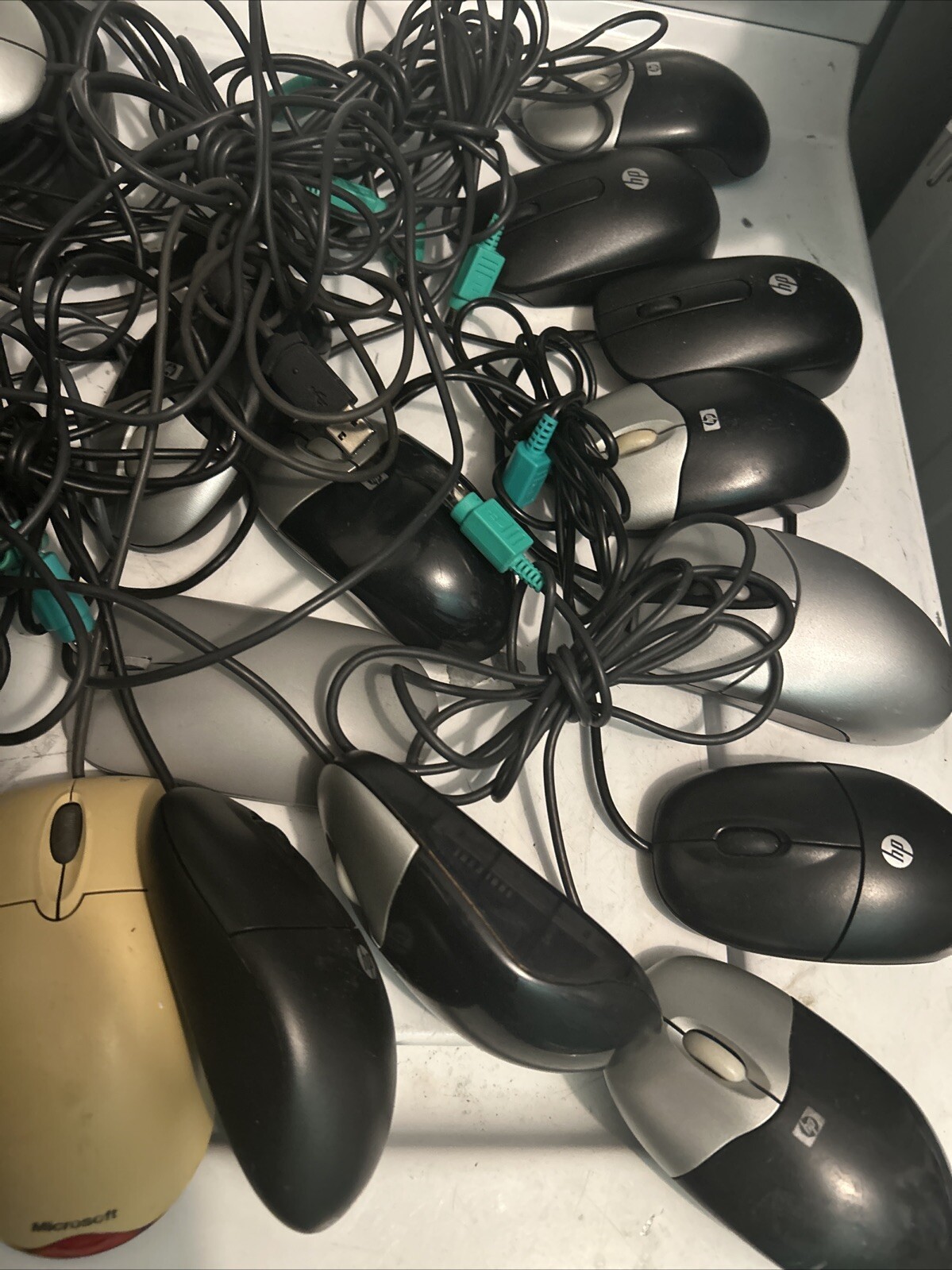 Mixed Lot of 14 HP Microsoft Logitech USB Optical Mouse w/ Scroll Wheel