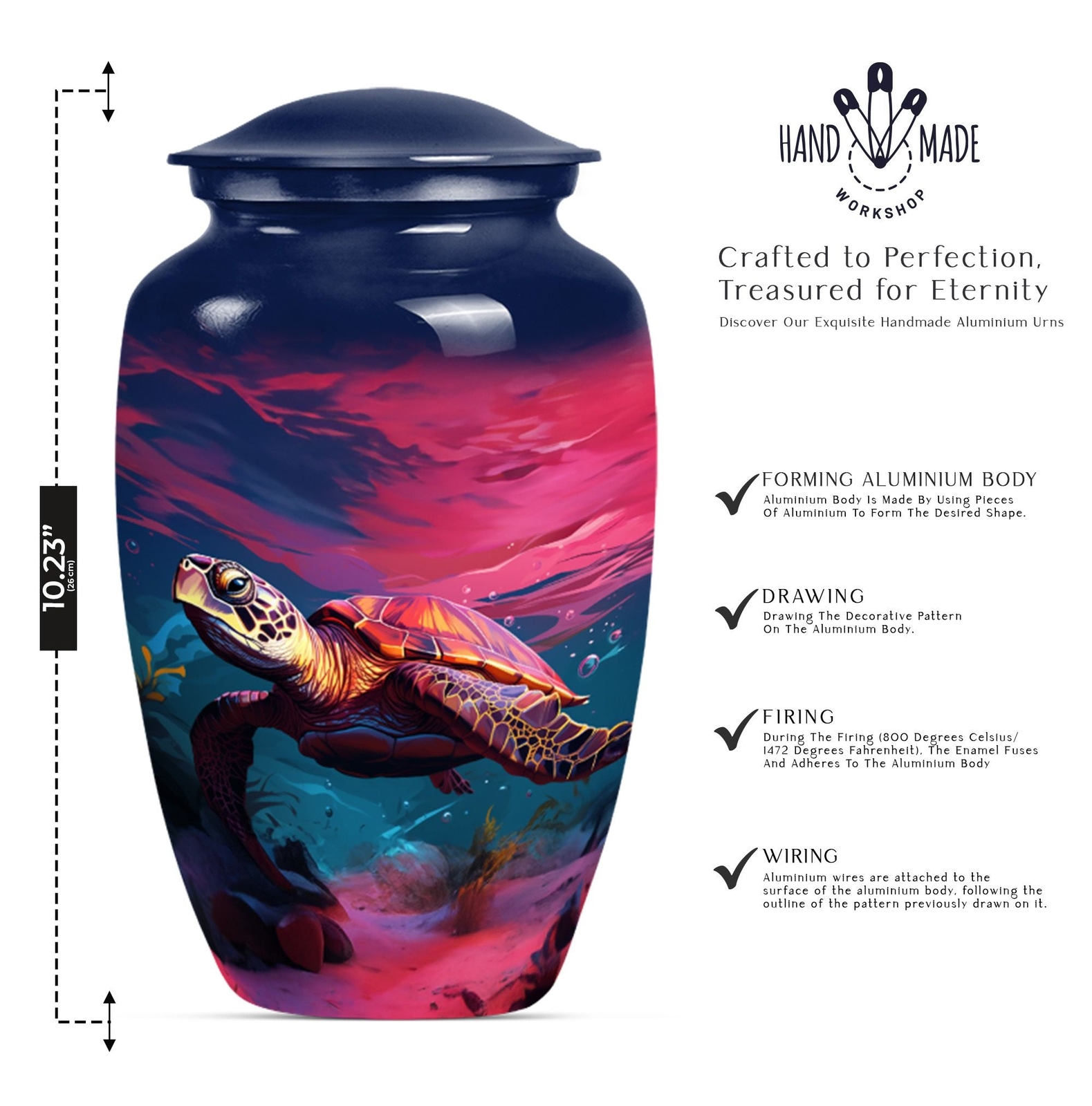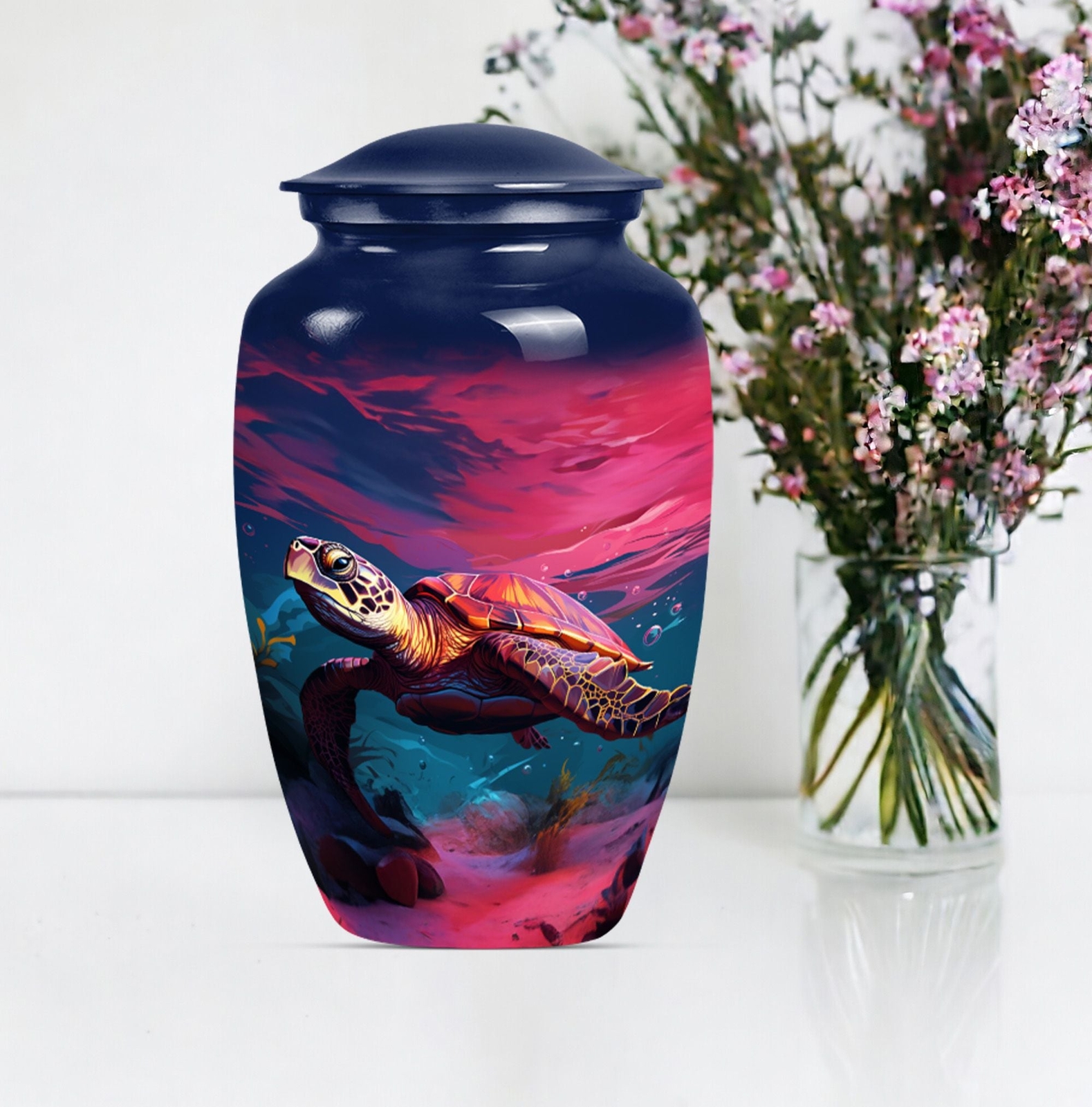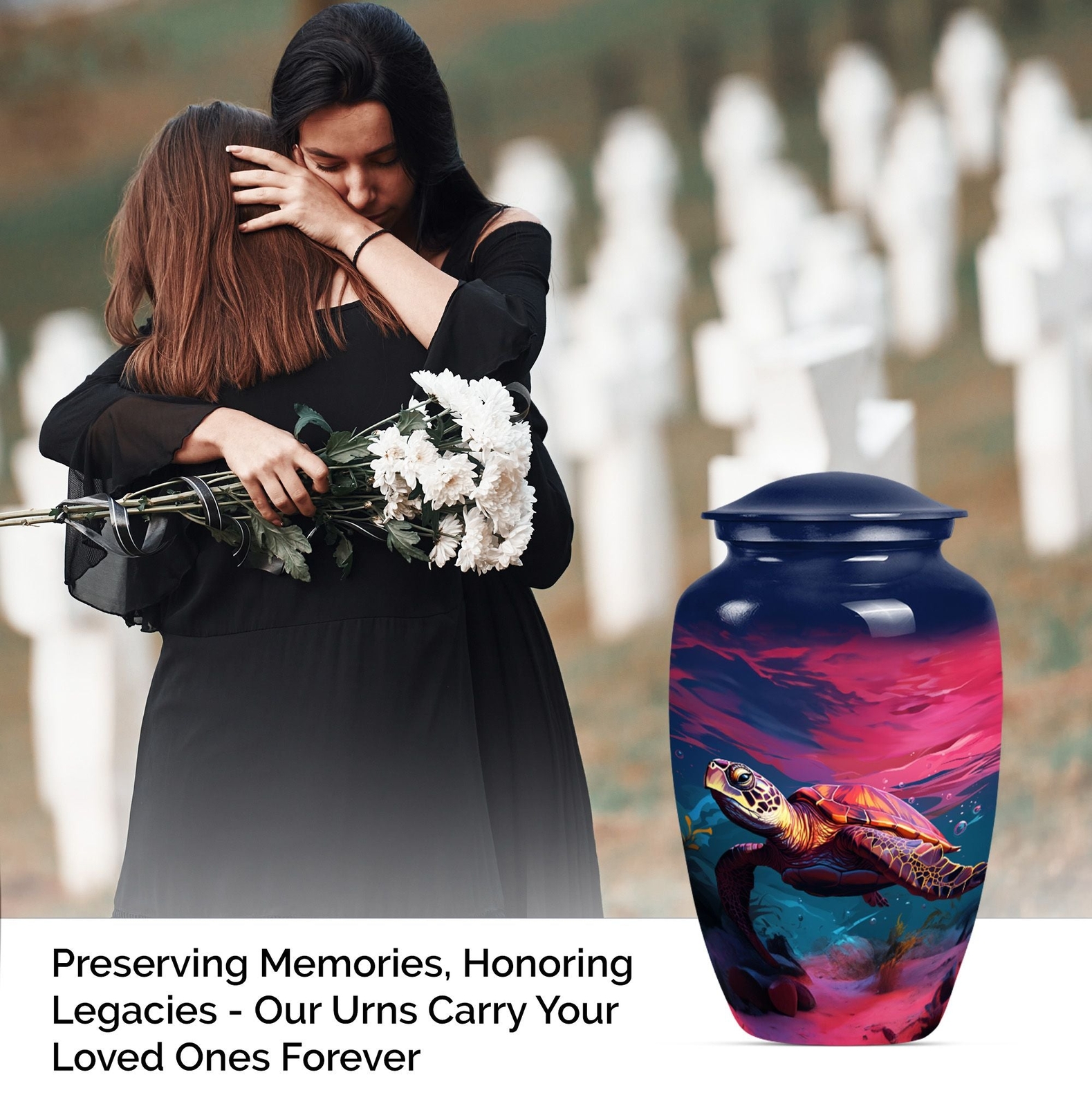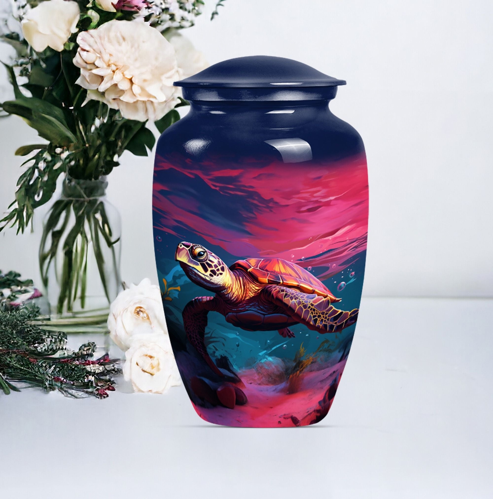 • Turtle Urn: Medium-sized Memorial with Howling Wolf Theme
