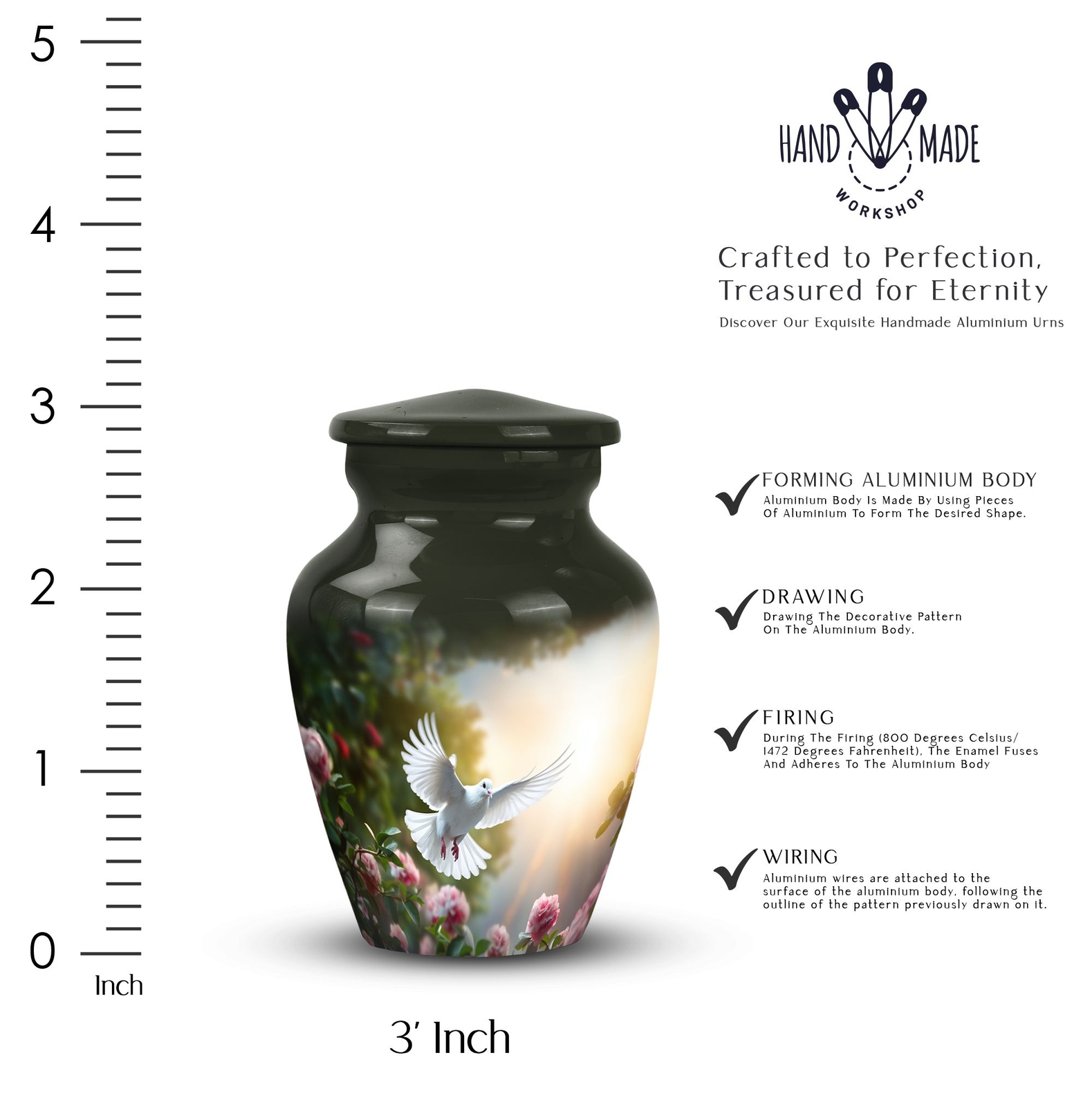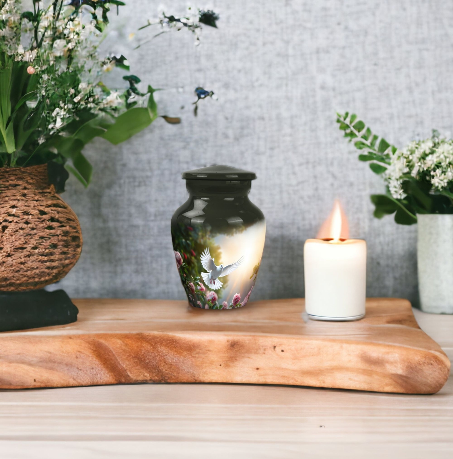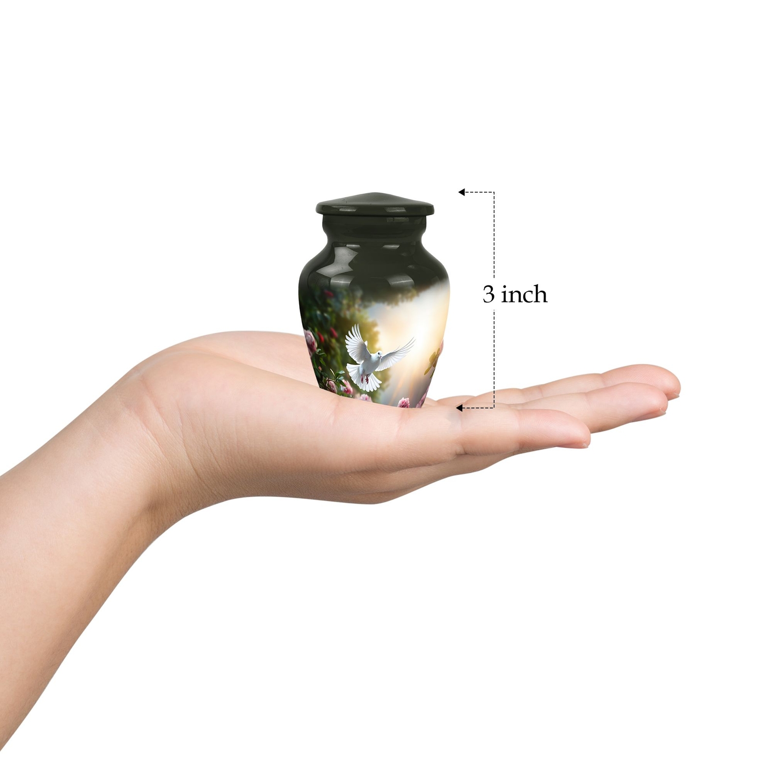 • Dove Flying Peaceful Departure Memorial Urn For Ashes Keepsake