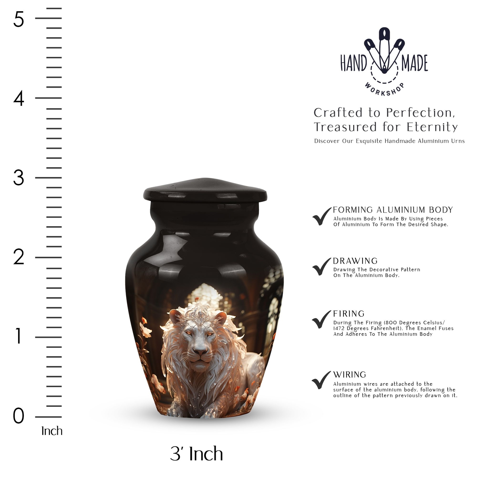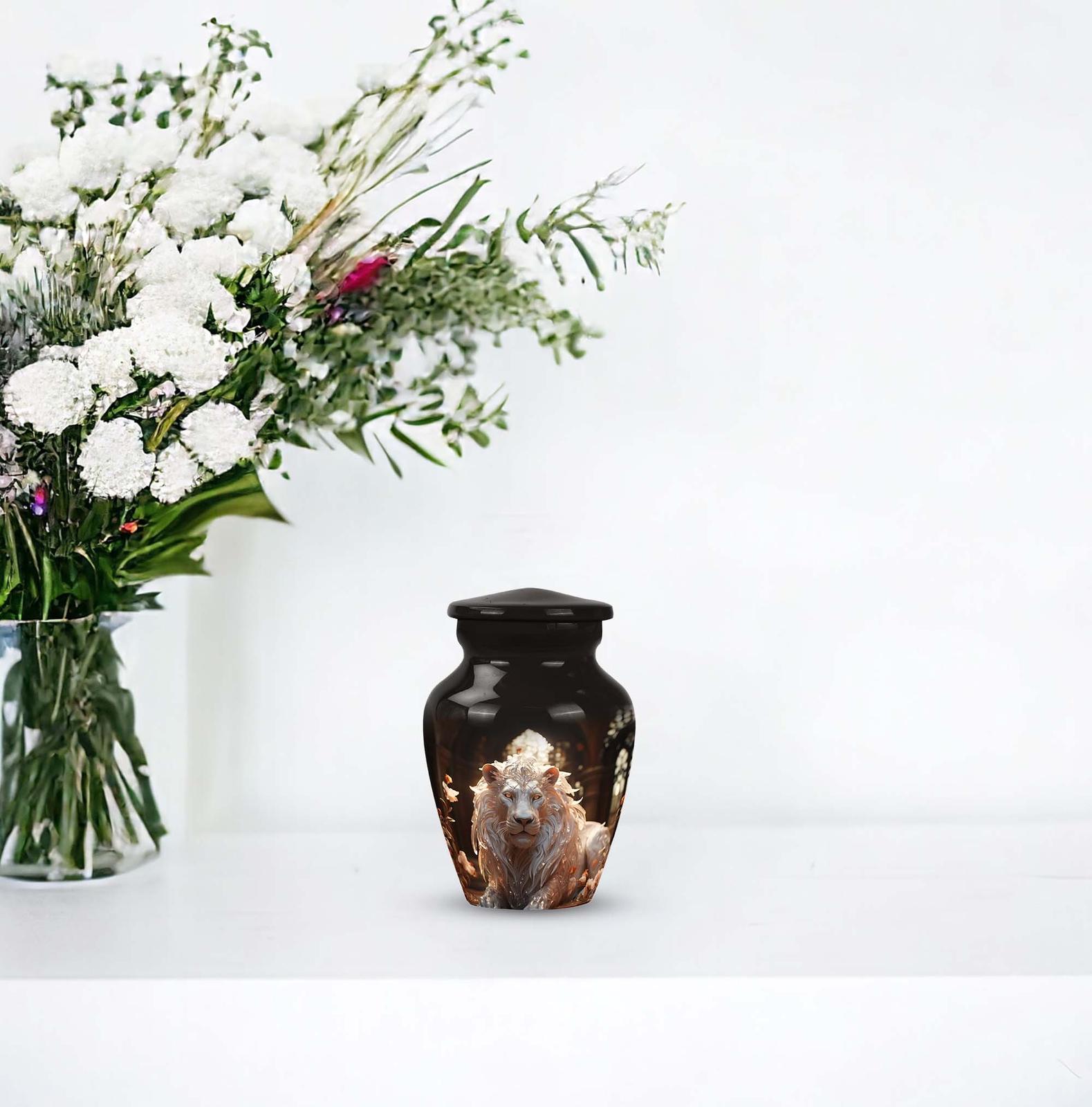 • White Lion Black Cremation Urns for Adult Ashes Keepsake
