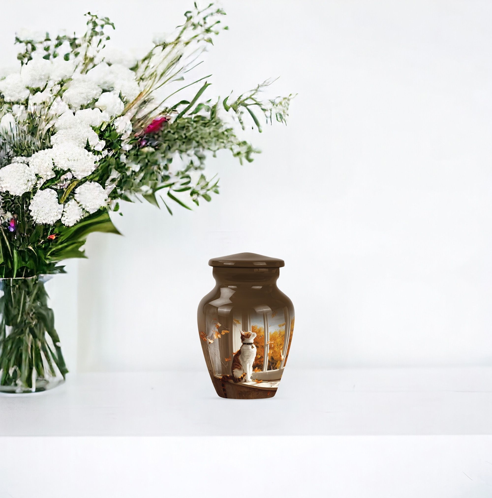 Eternal Rest Cremation Urn with Orange Cat Theme Keepsake