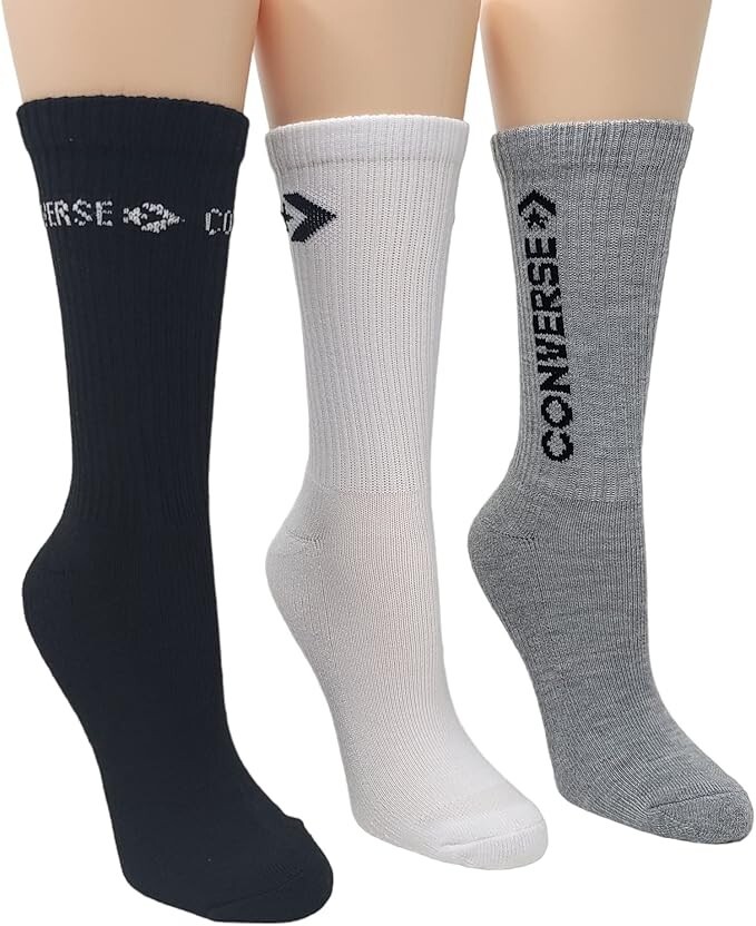 3 Pack CONVERSE Women's Half Cushion Crew Socks Size 4-10 White/Black/Light Grey
