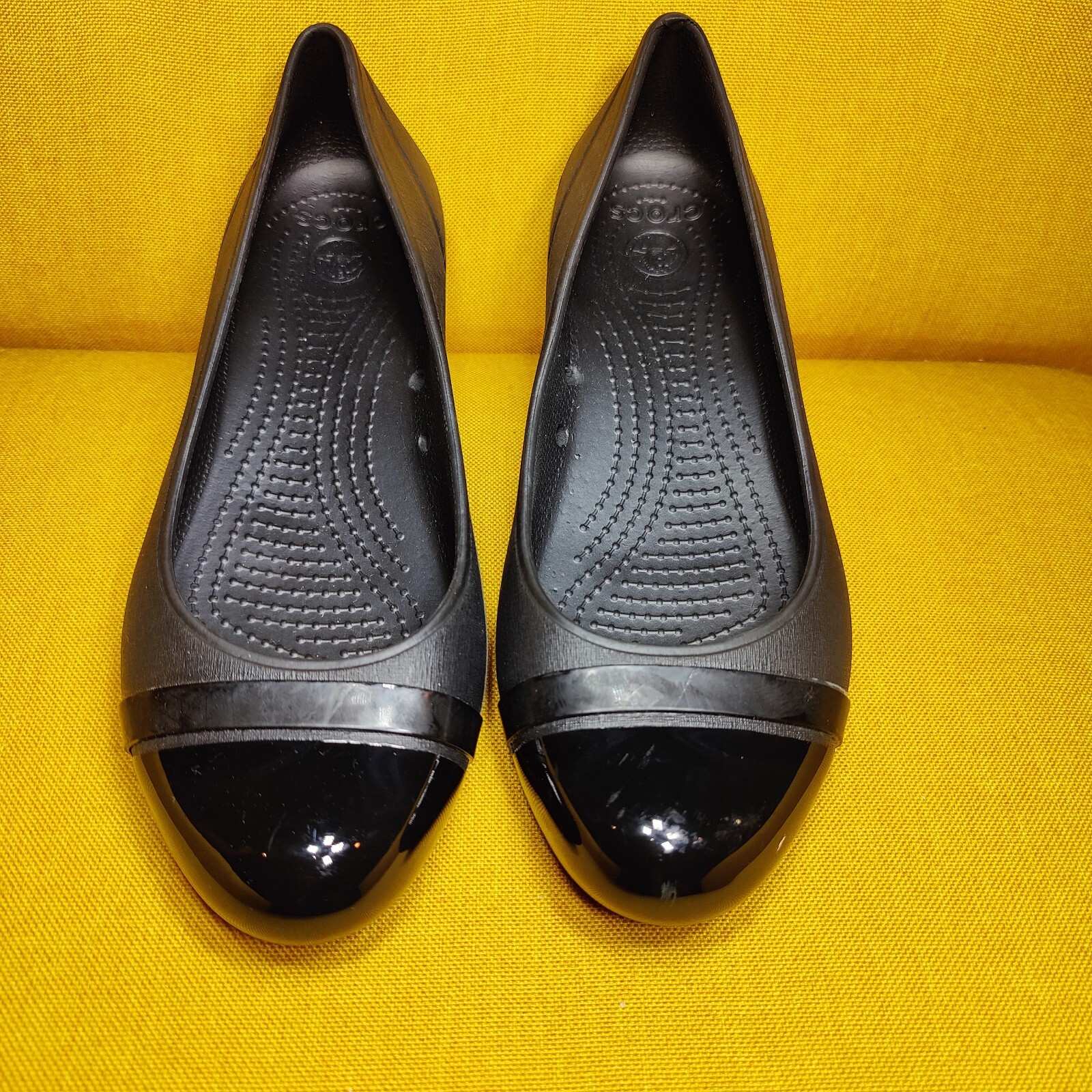 Crocs Giana Black Captoe Ballet Flats Women's Size 7 Casual, Summer Travel Vacay