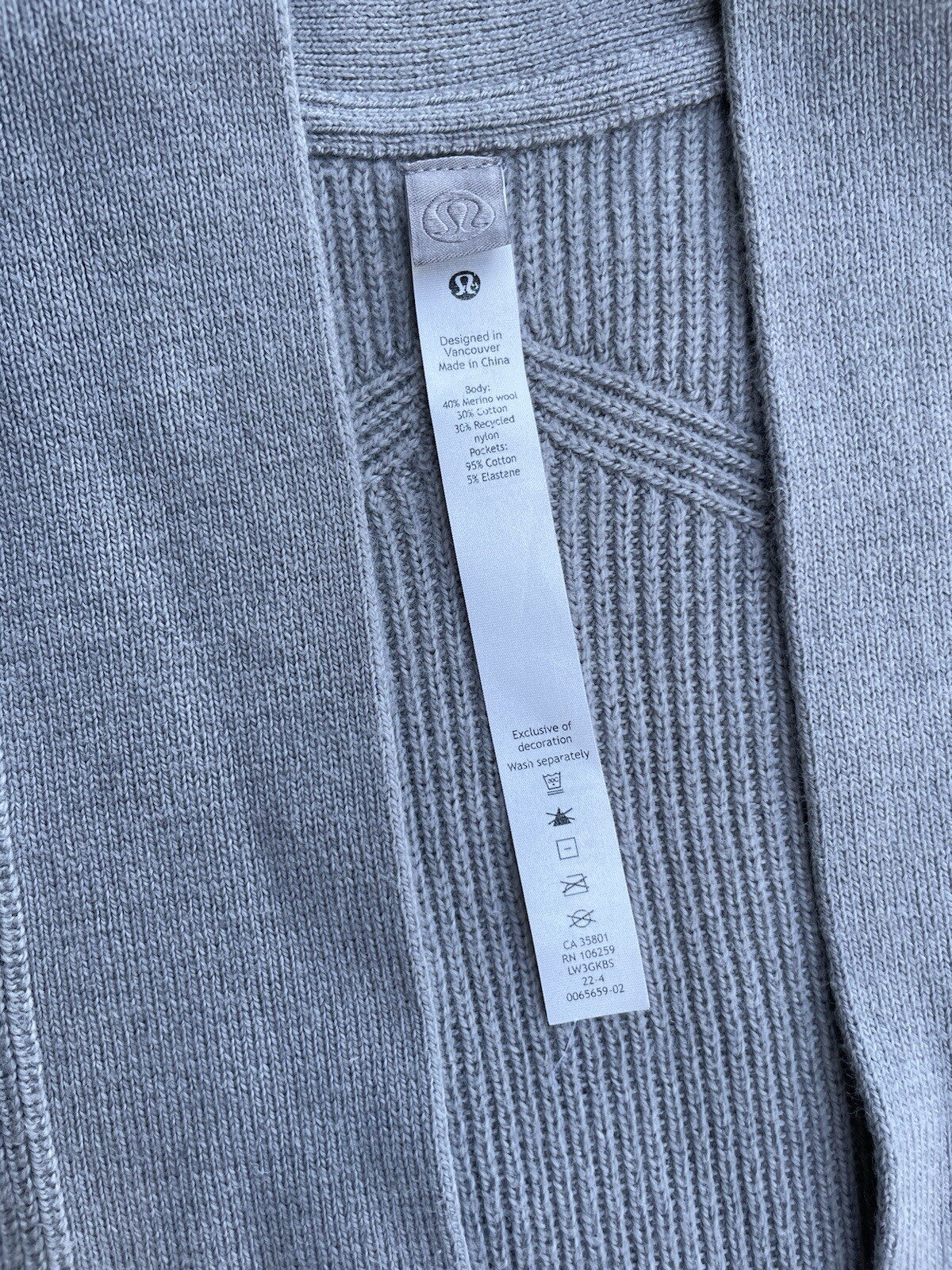 как выглядит Lululemon Merino Wool Blend Rib Long Wrap Sweater - Heathered Grey, Size 8 фото