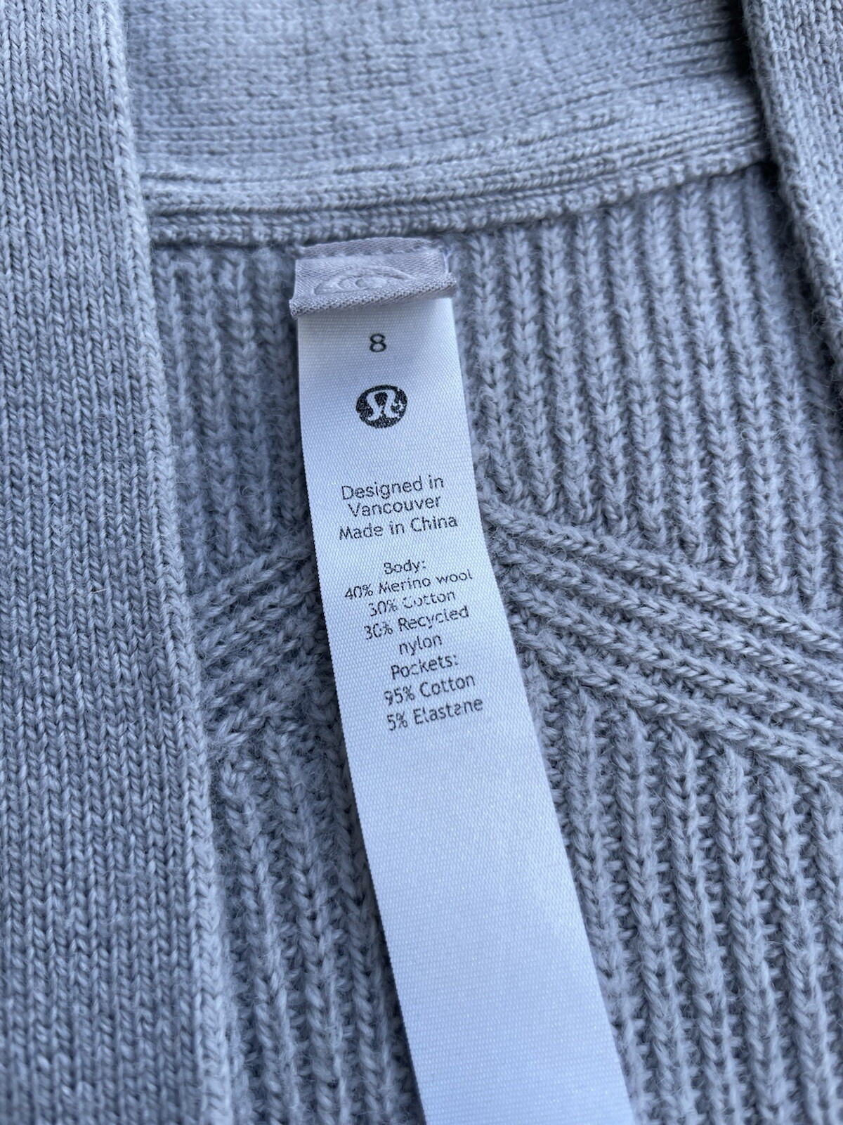 Lululemon Merino Wool Blend Rib Long Wrap Sweater - Heathered Grey, Size 8