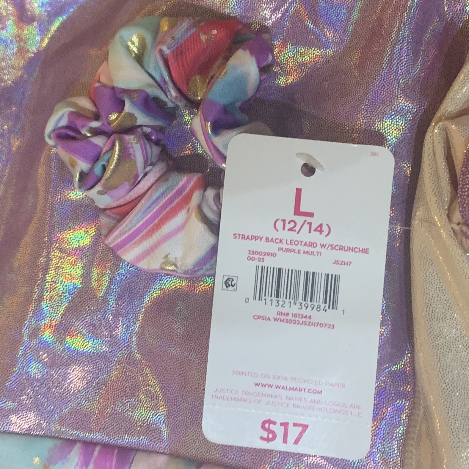 Justice Girls Strappy Back Leotard with Scrunchie Large 12-14 New with Tags Nice