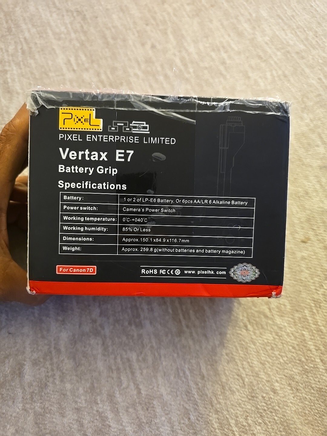 Pixel Vertax Battery Grip For Canon 7D BG-E7 W/ Multiple Battery Trays