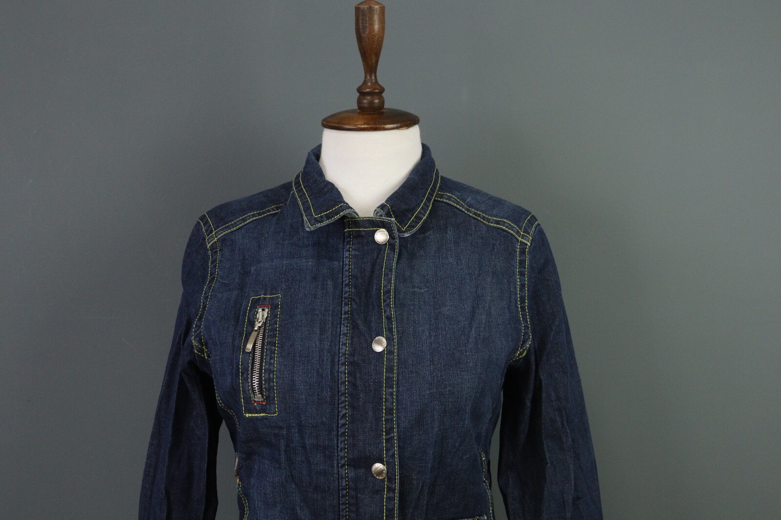 Escada Sport Ladies Blue Denim Button Closures Zippered Pockets Jacket Size 38