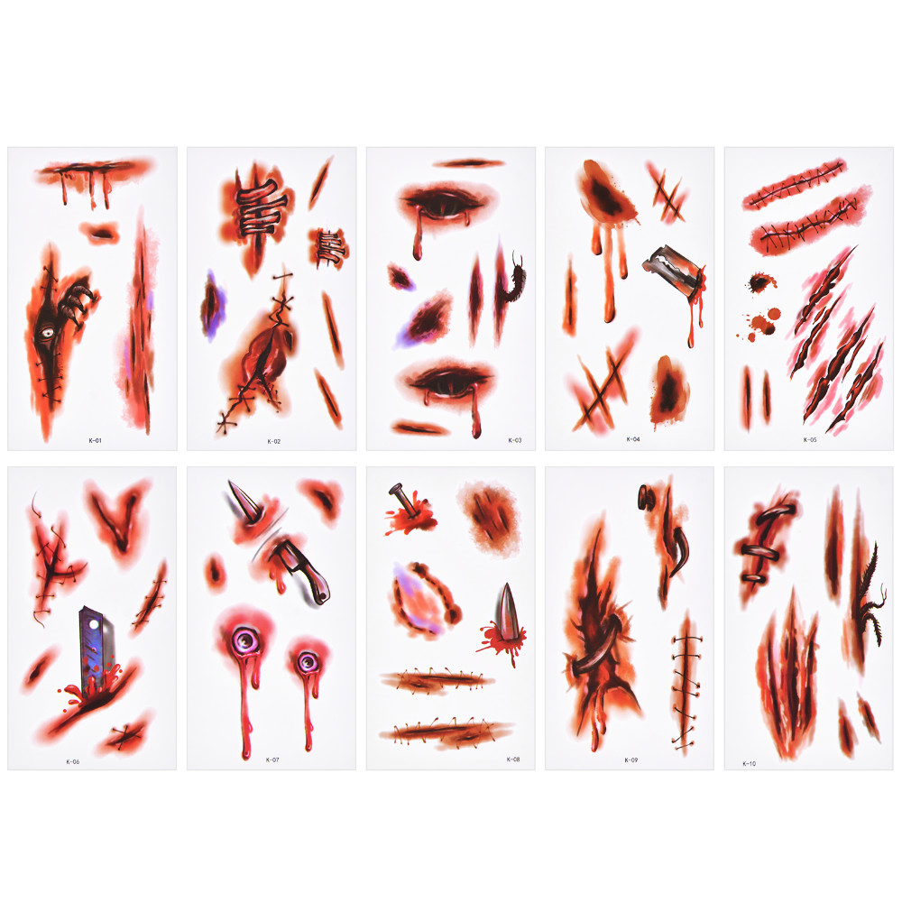 20 Kinds Halloween Temporary Tattoos Body Tattoo Scar Blood Fake Wound Sticker