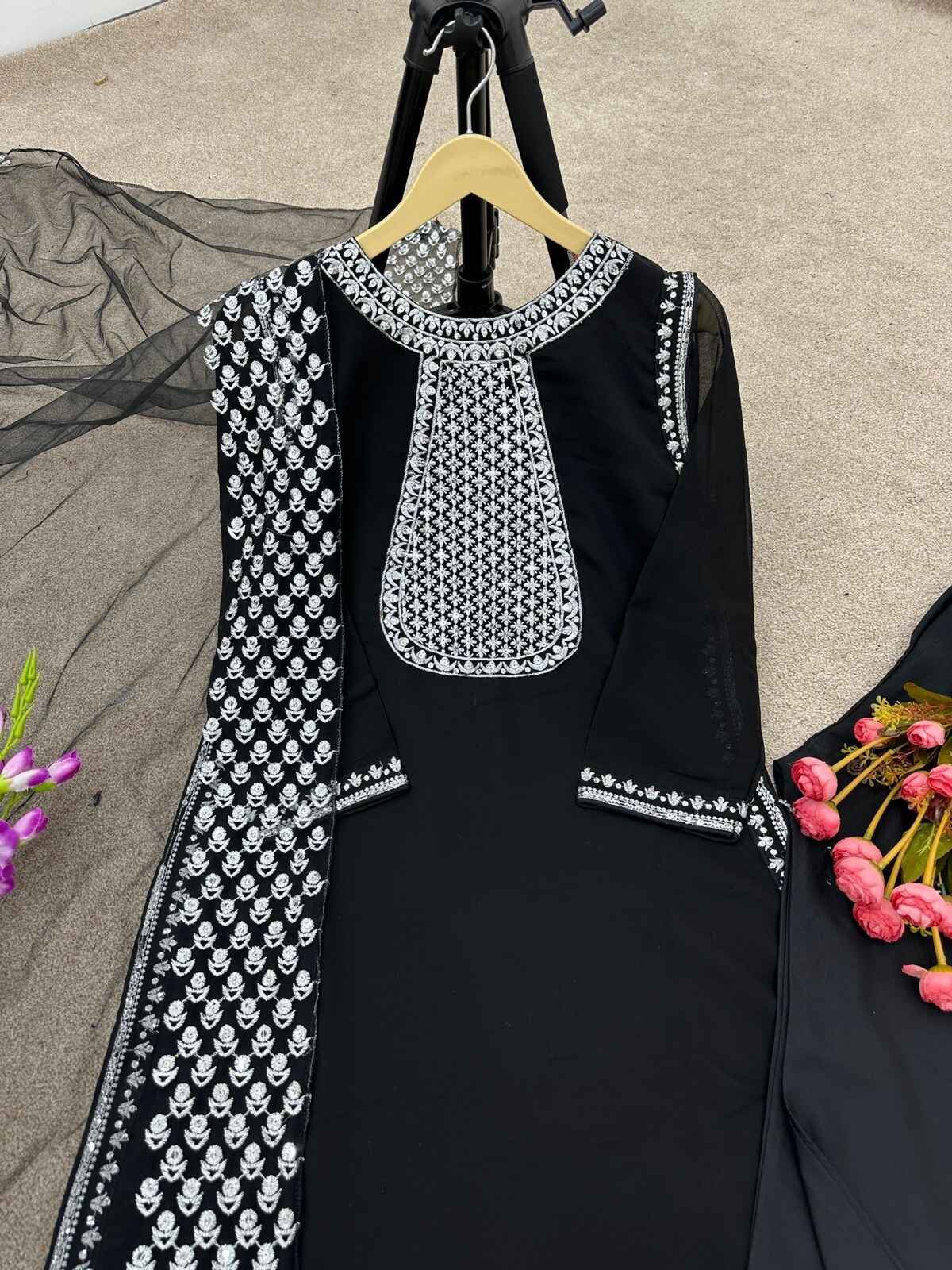 как выглядит Ethnic Look Faux Georgette Salwar Kameez With Dupatta For Women And Girls Wear фото