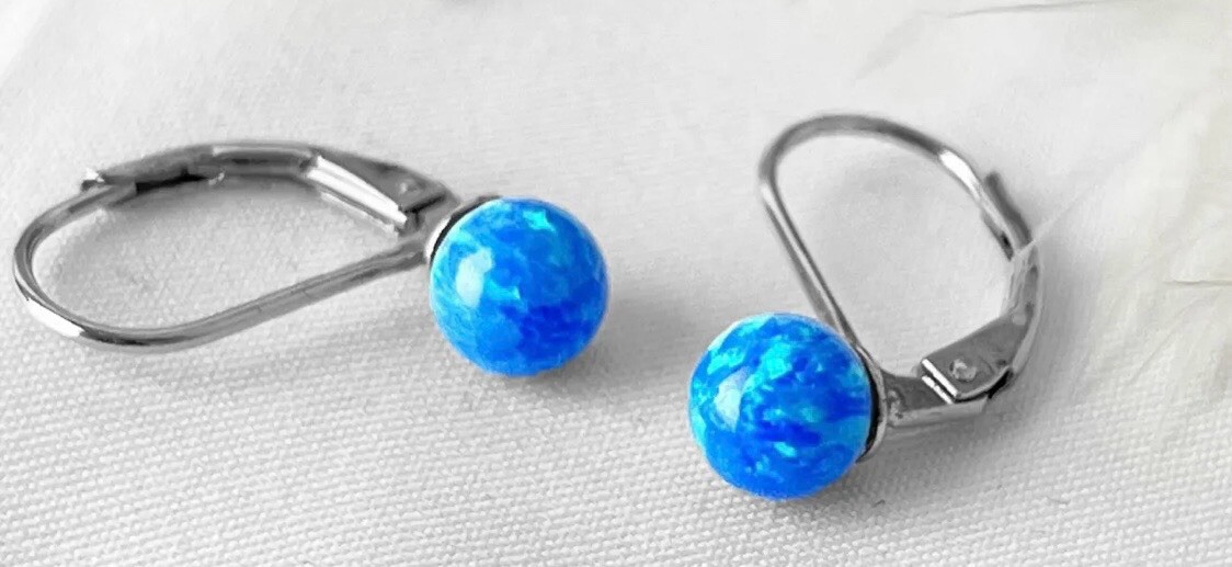 925 Sterling Silver Blue Opal Drop Earrings