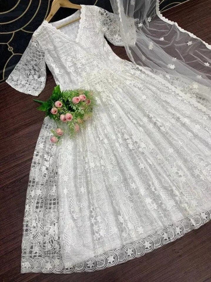 New Indian Designer Heavy Soft Net Gown With Dupatta For Wedding