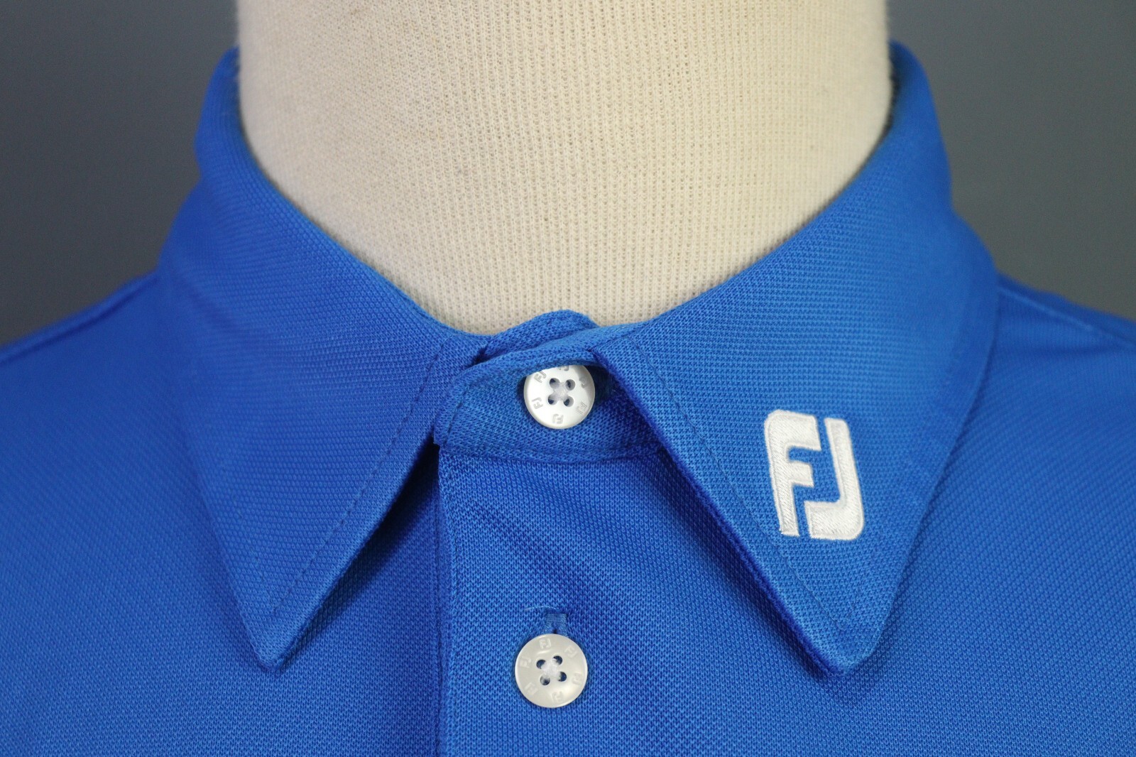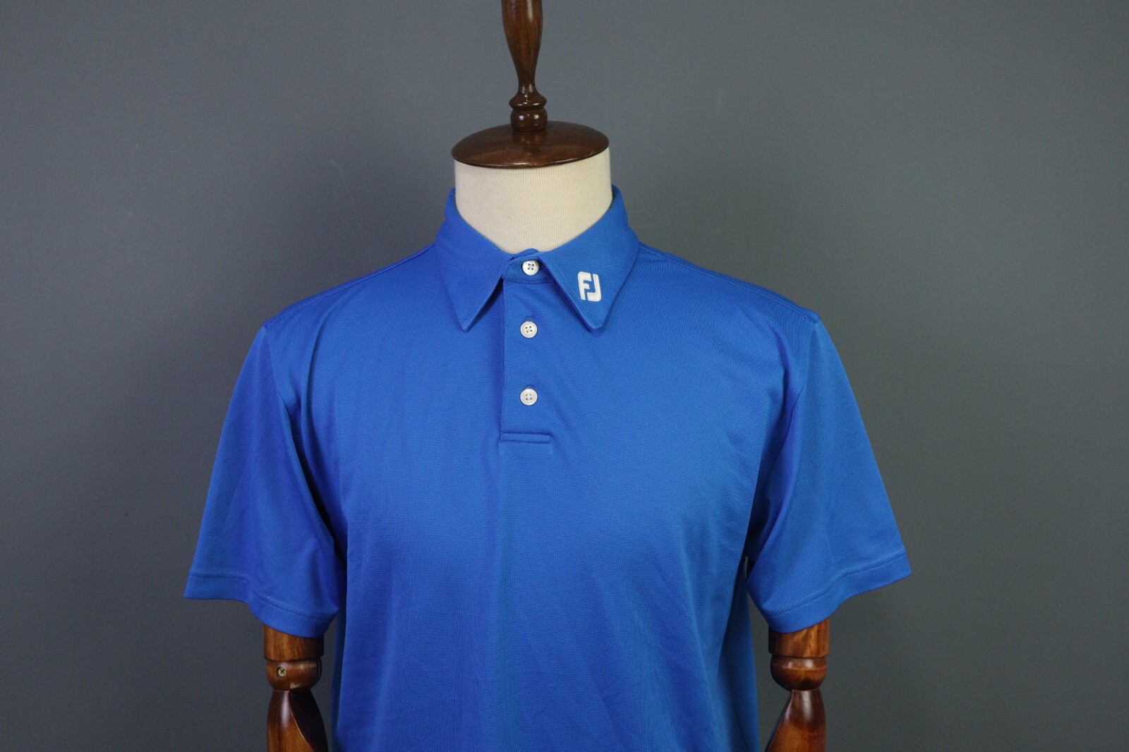как выглядит FJ FootJoy Blue Polyester Blend Short Sleeve Polo Shirt Size L фото