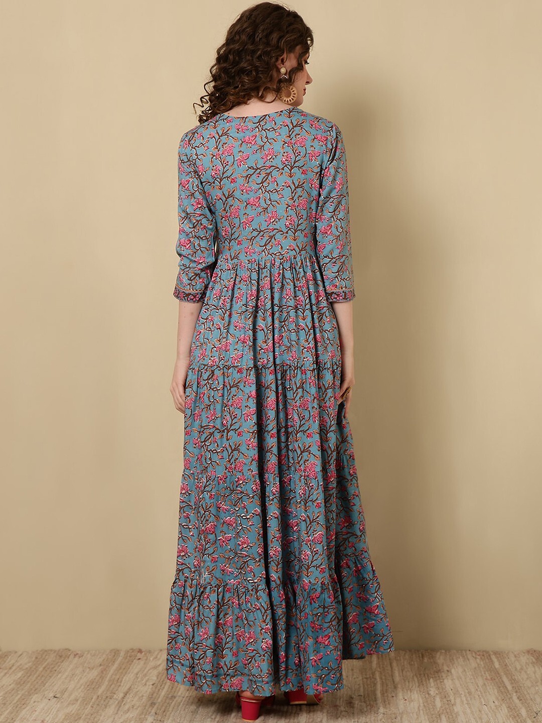как выглядит Indian Women Blue Rayon Floral Printed Anarkali Flared Long Dress Kurta Kurti фото
