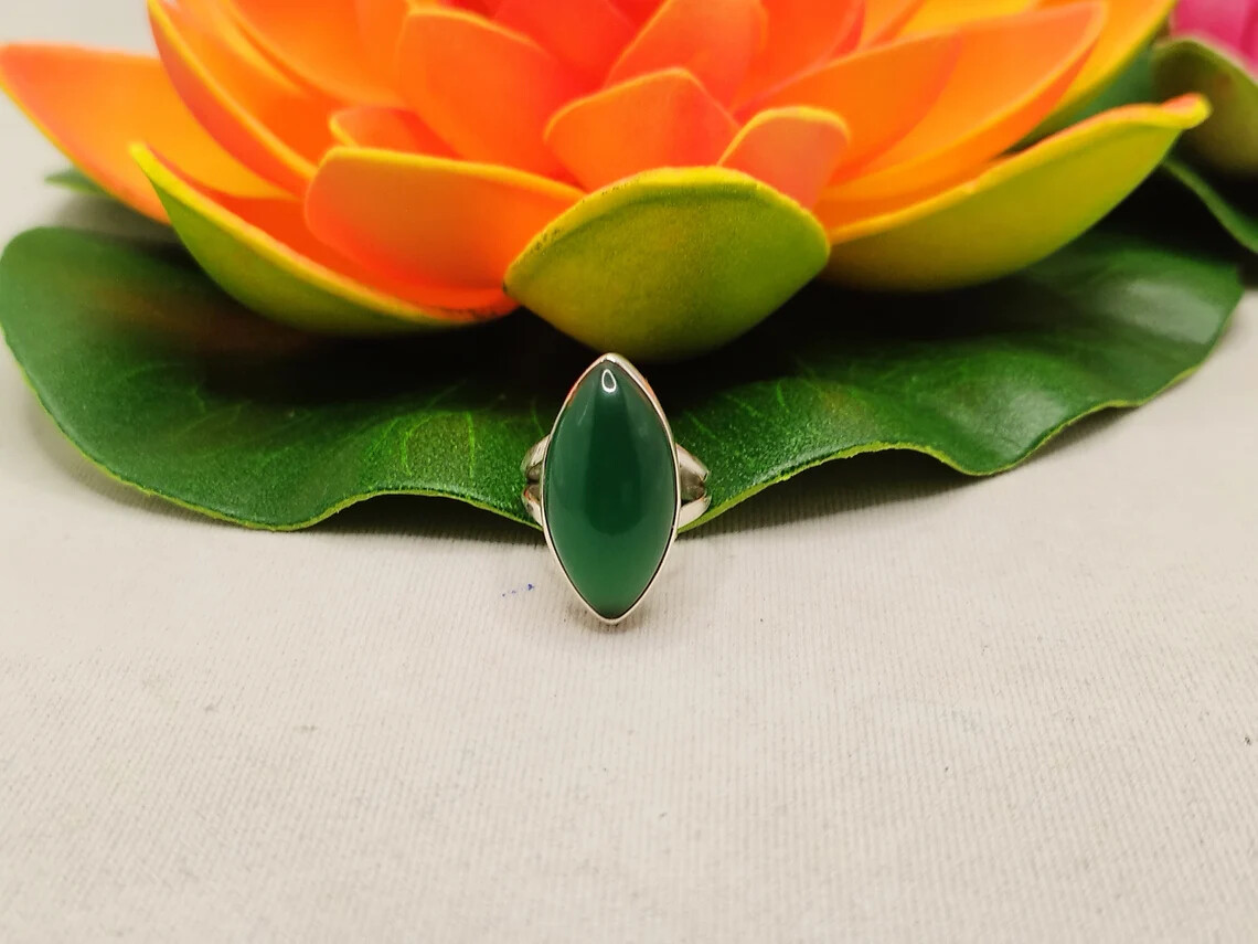 Solid 925 Sterling silver Natural Green Onyx Ring Gemstone Jewelry For Her J 12