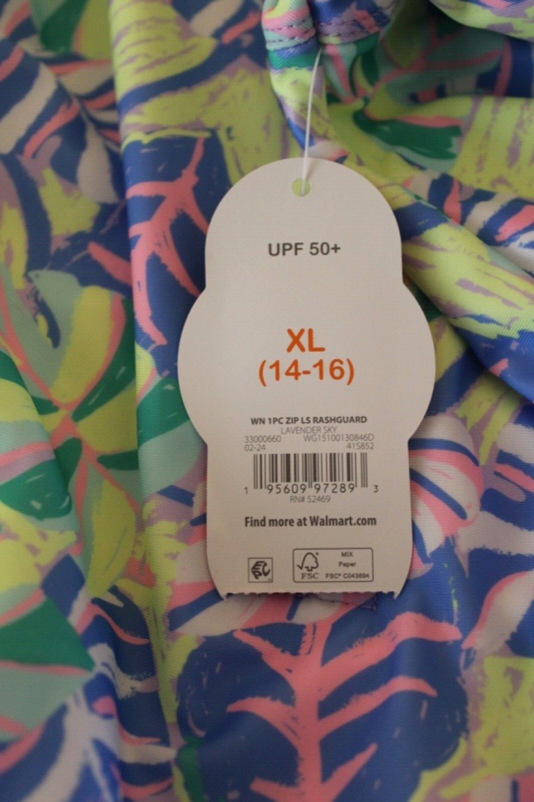 Wonder Nation Girls Long Sleeve Zip-Up Rash Guard 1PC Swimsuit Lavender Sky XL