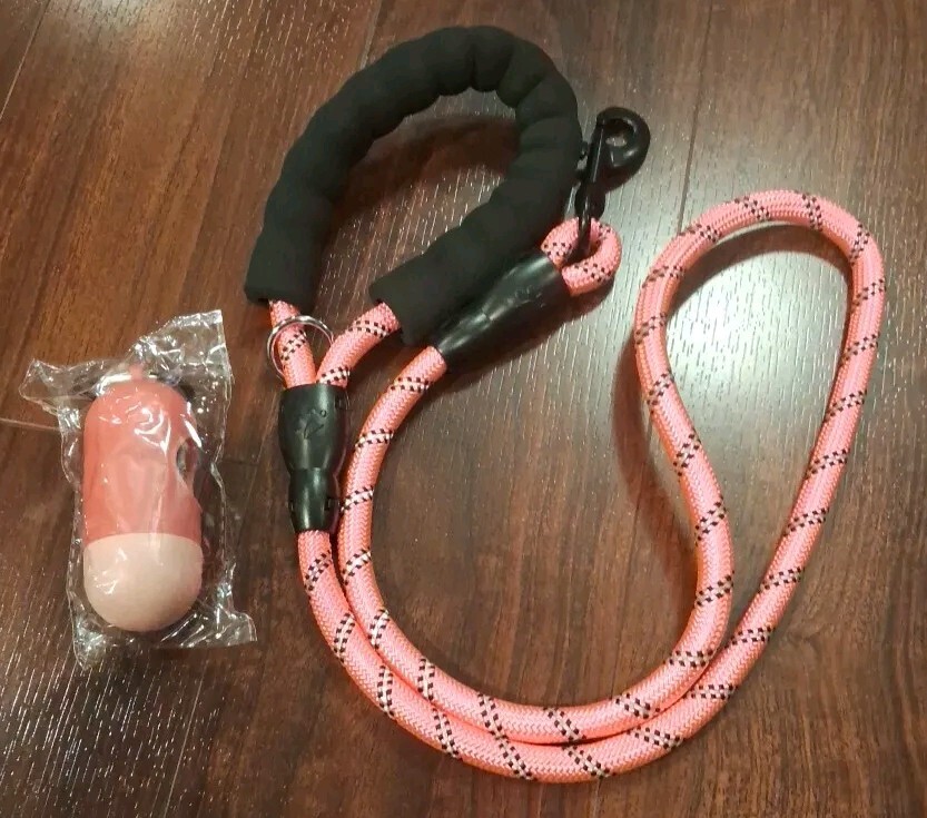 как выглядит New other 6Ft Heavy Duty Dog Pink Leash Nylon Rope Plus Poop Bag Holder w/Bags фото