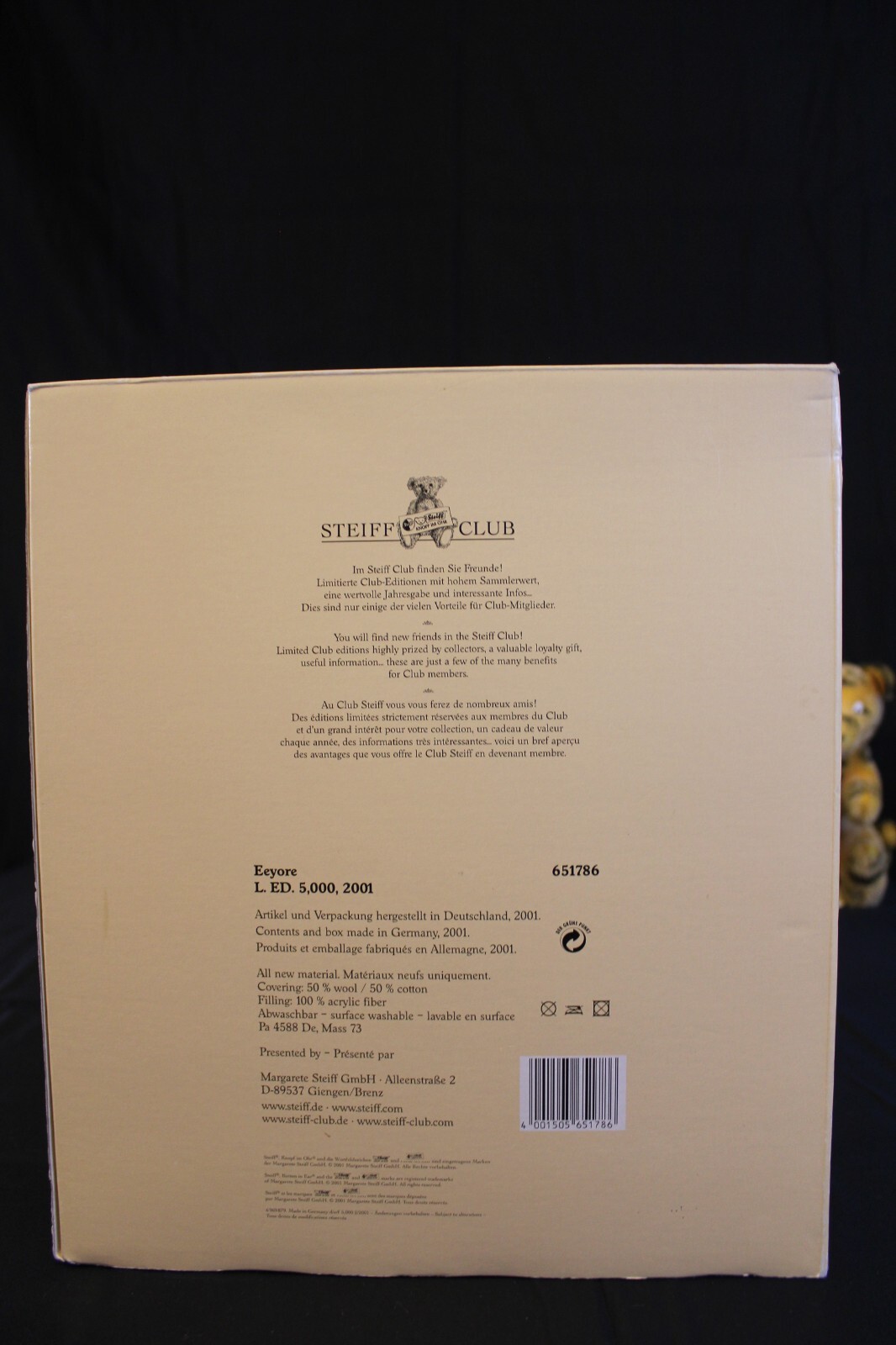 Limited Edition Steiff 2001 Winnie The Pooh Eeyore Stuffed Animal