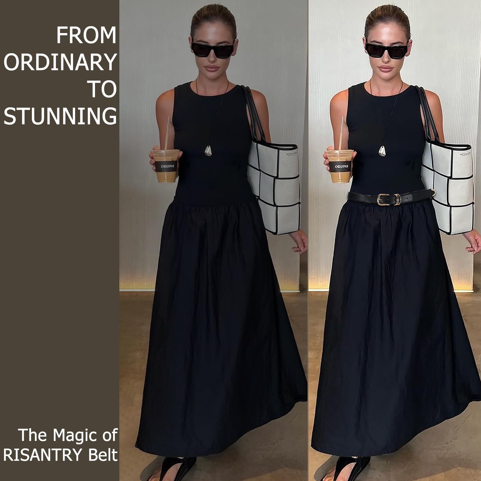 Women's Black Belts with Gold Buckle Elegant Leather Waist Belt Ladies Belts ...