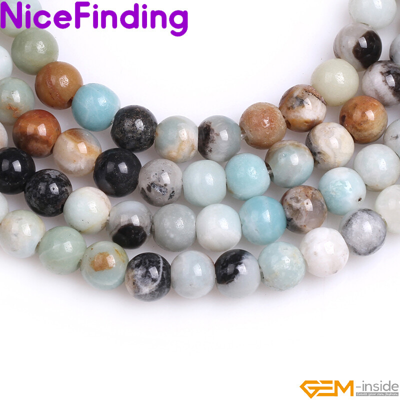 как выглядит Natural Multi Color Amazonite Gemstone Large Hole Stone Beads Jewelry Making 15" фото