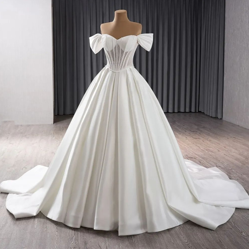 как выглядит Bohemian Satin Wedding Dresses Off the Shoulder with Court Train Bridal Gowns фото