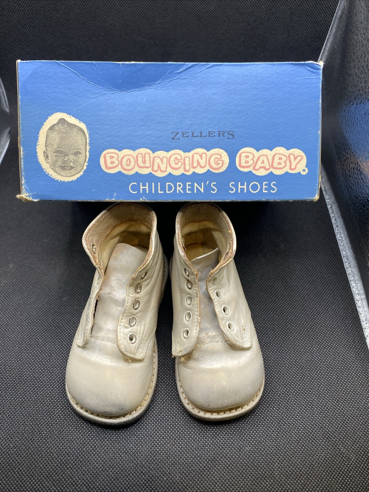 VTG Child's Shoes White Leather Flat bottom Toddler Baby Lace Up Zeller's Box