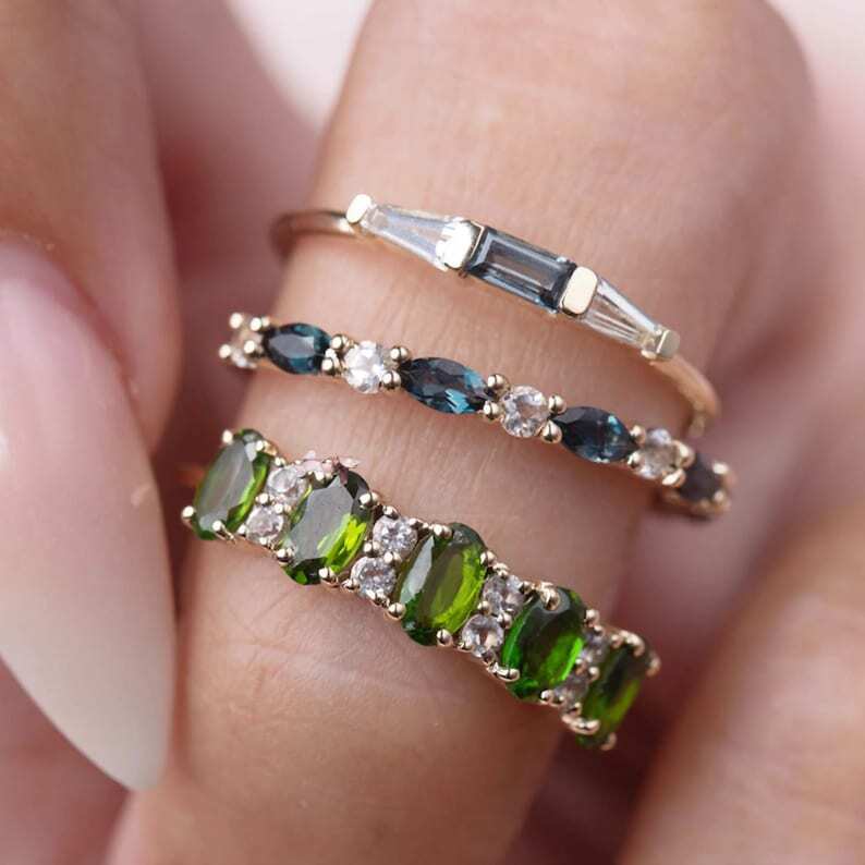 как выглядит Lab Created Blue Topaz Full Eternity Stacking Ring For Wedding Anniversary Wear фото