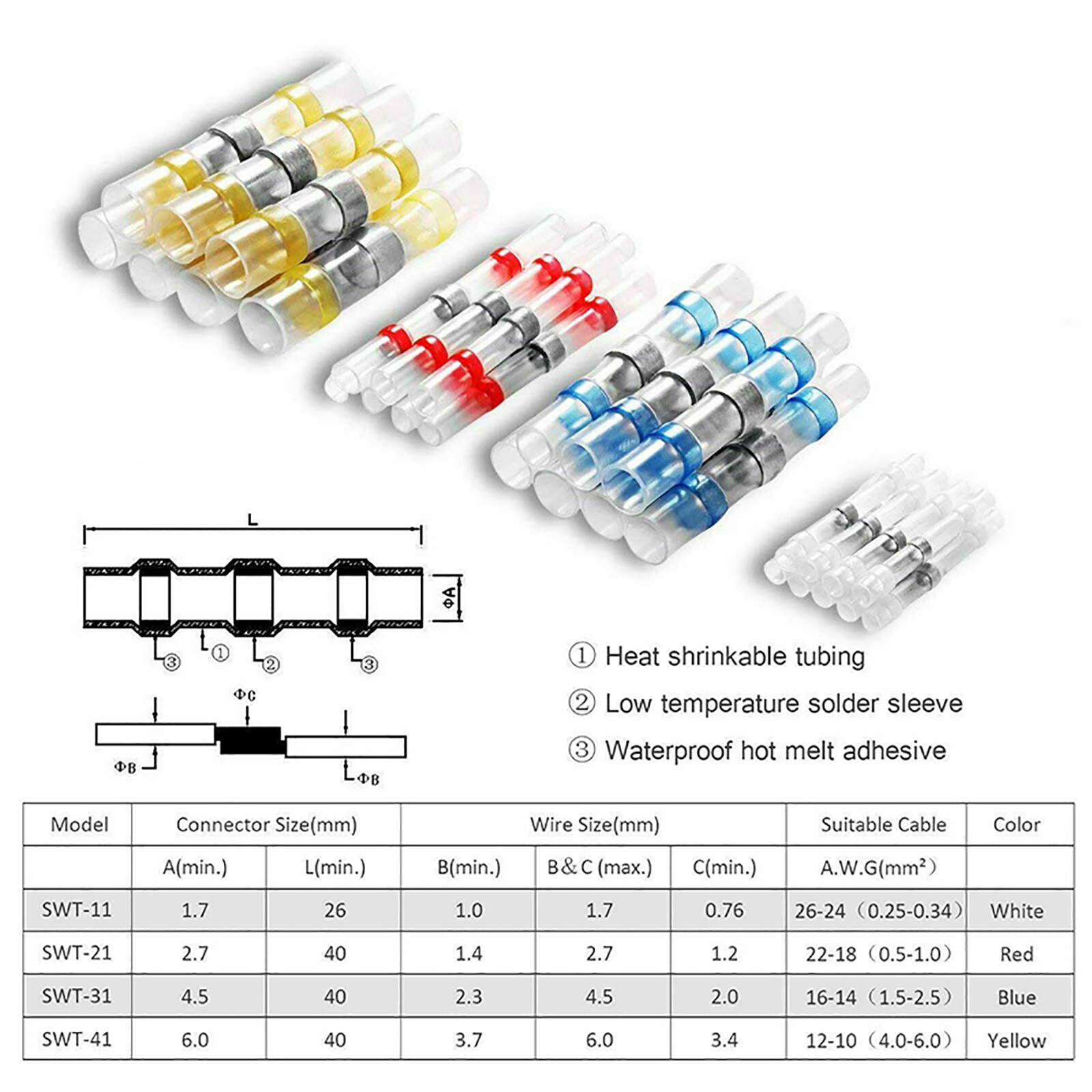 как выглядит 400PCS Waterproof Solder Seal Heat Shrink Wire Butt Terminal Connectors Kit Set фото