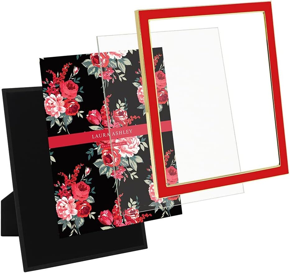 Laura Ashley 8x10 Red Enamel Picture Frame, Gold Metal Edge with Easel, for C...