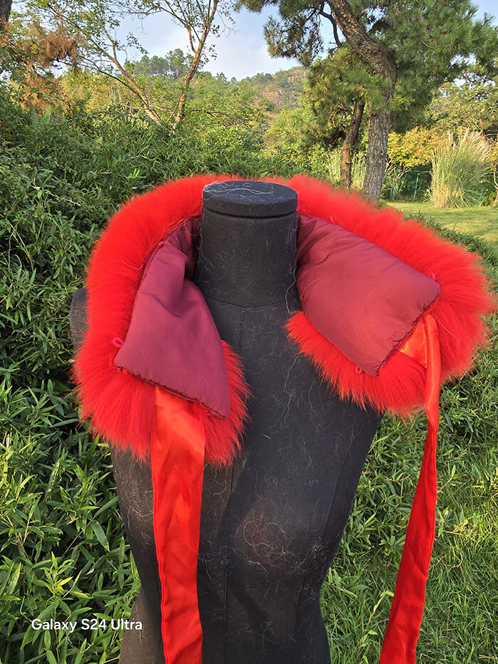100 Real fox fur neck wrap / red scarf / jacket collar with ribbons