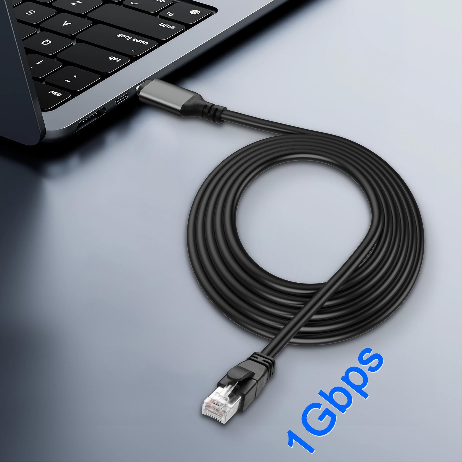 USB Type C to Ethernet Cable Gigabit LAN Network 1 Gbps Type C Male to RJ45 M...