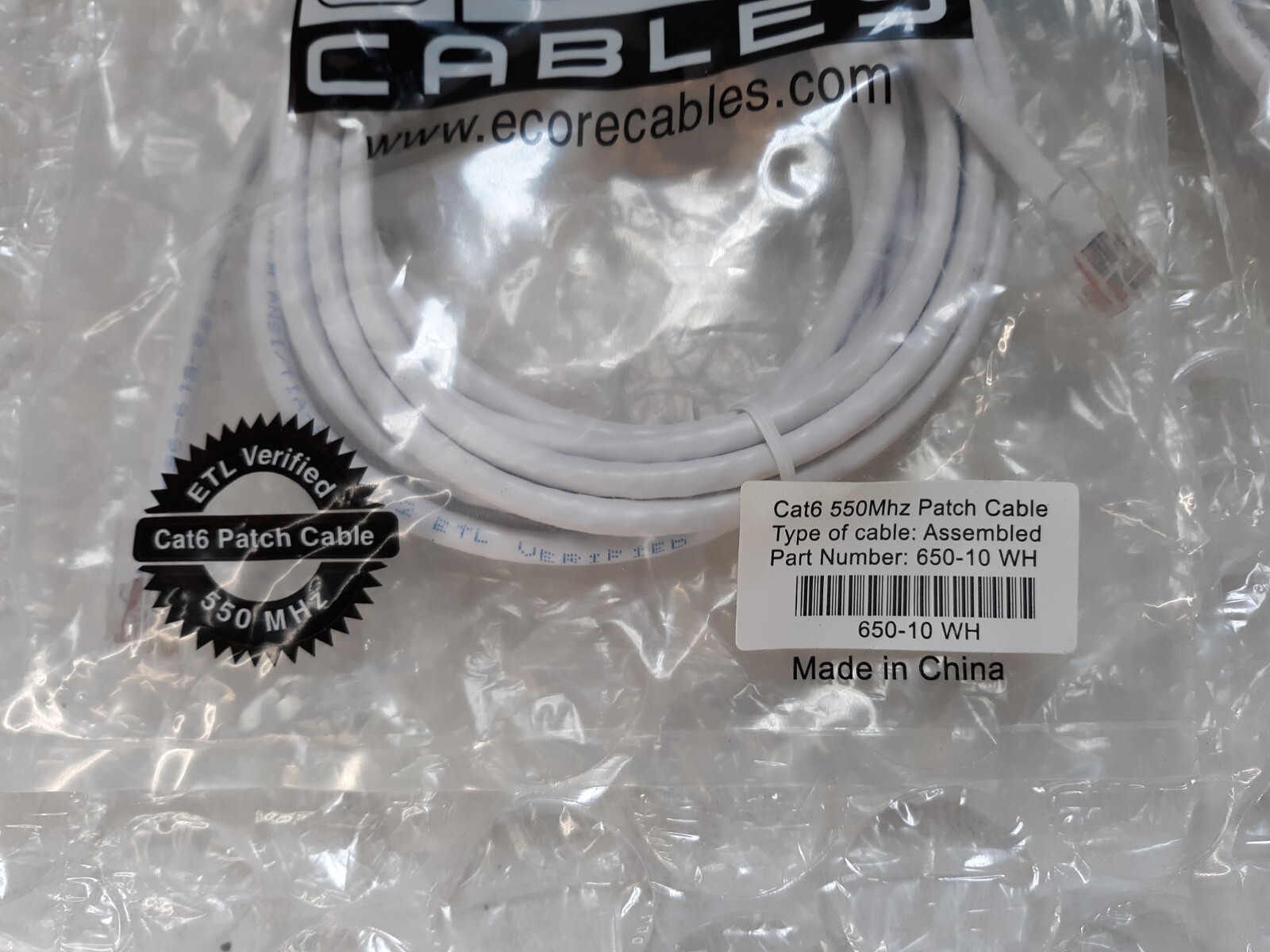 Lot of 4 ECore Cat6 Patch Cable 4Pair UTP 24AWG 10ft. 650-10WH NEW SEALED
