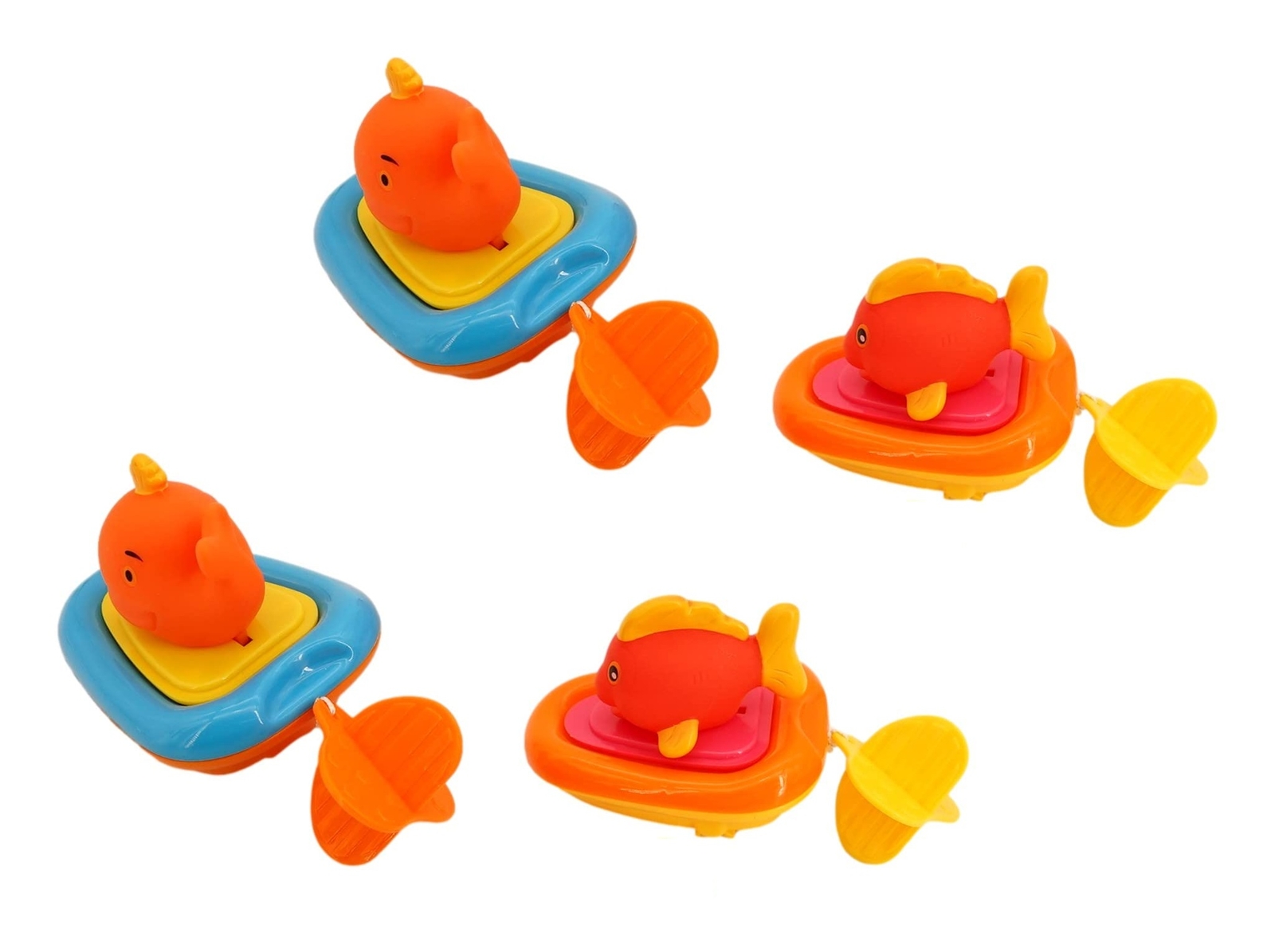 Pull String Bath Surfers 4 Pack Floating Animal Bath Toys for Toddlers,