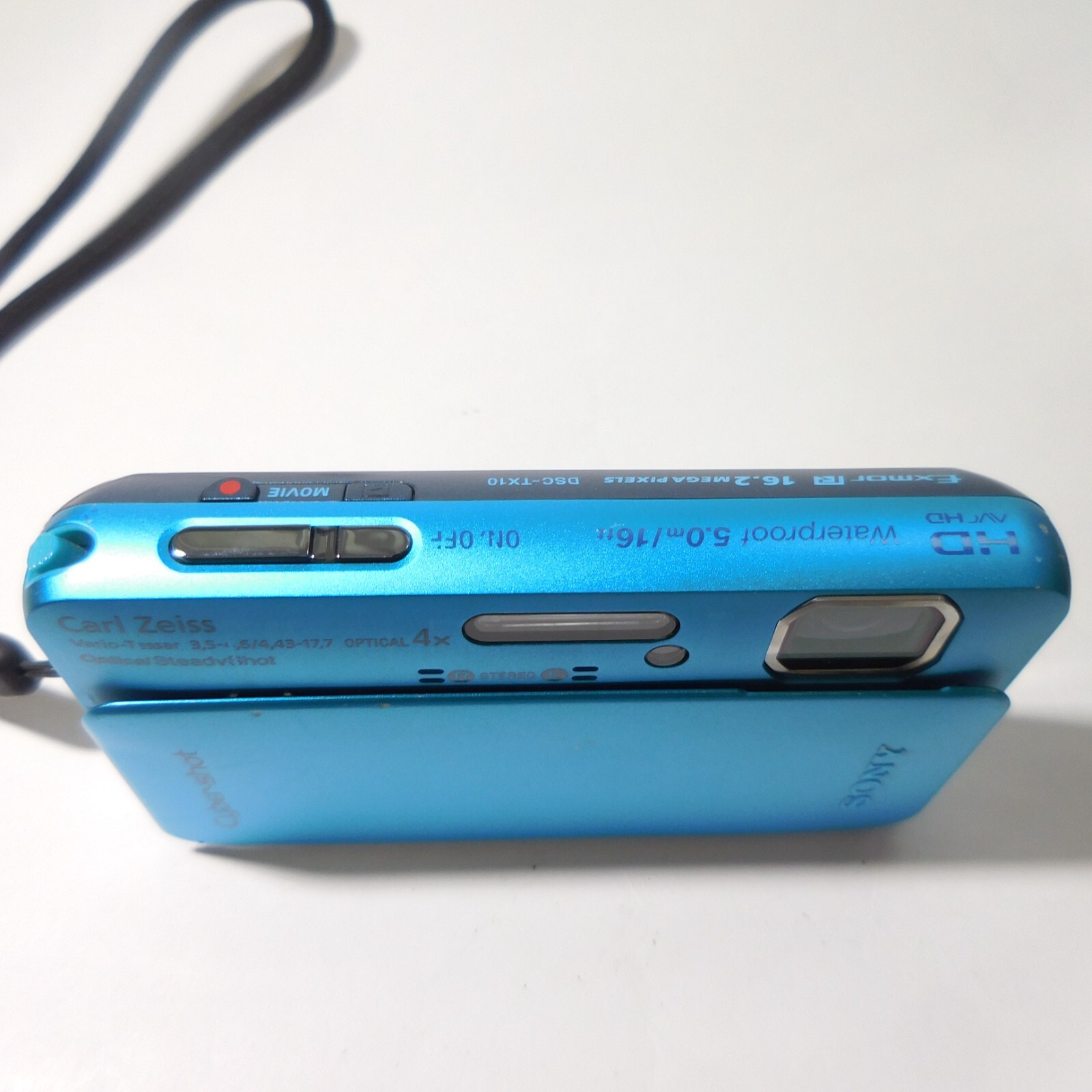 SONY Cyber-Shot DSC-TX10 Blue Camera w/Battery Charger SD Card Japanese
