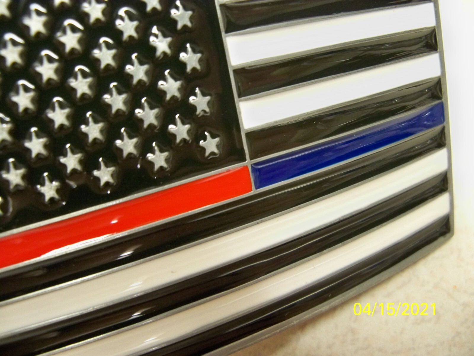 Glossy, U.S.A. Flag, Dual Blue Red Line, Police Fireman metal belt Buckle