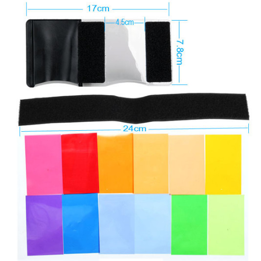 12pcs Camera Flash Gels Transparent Color Correction Balance Lighting Filter Kit