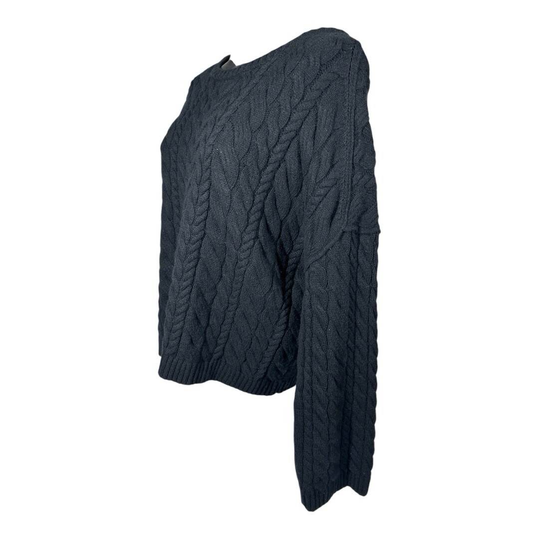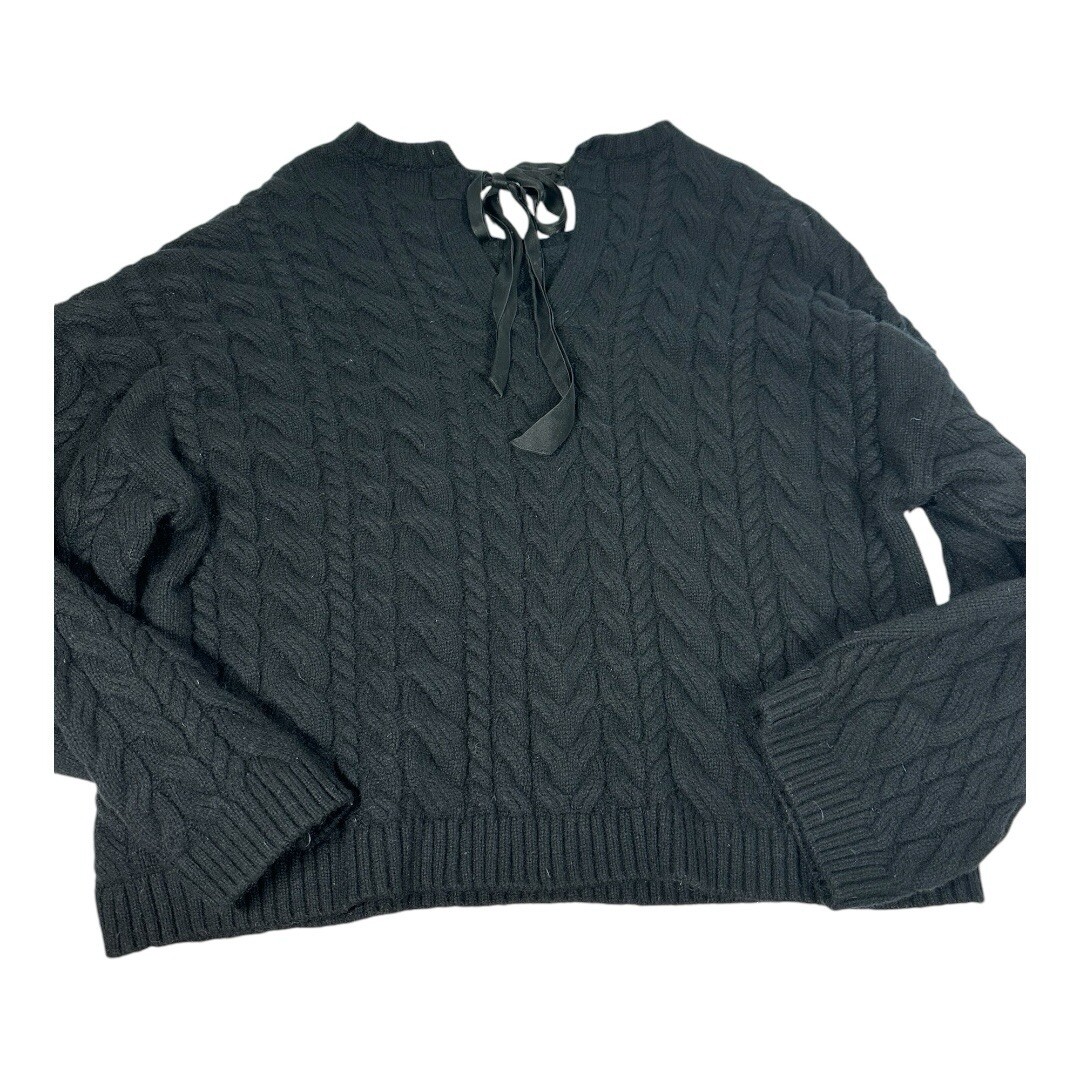 J. Crew Tie Back Cable Knit Sweater Women's Large Black Crewneck Wool BV361