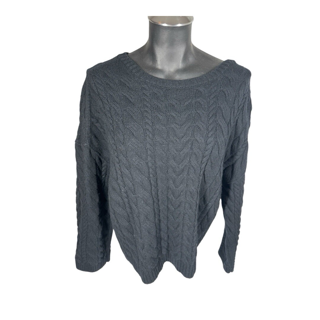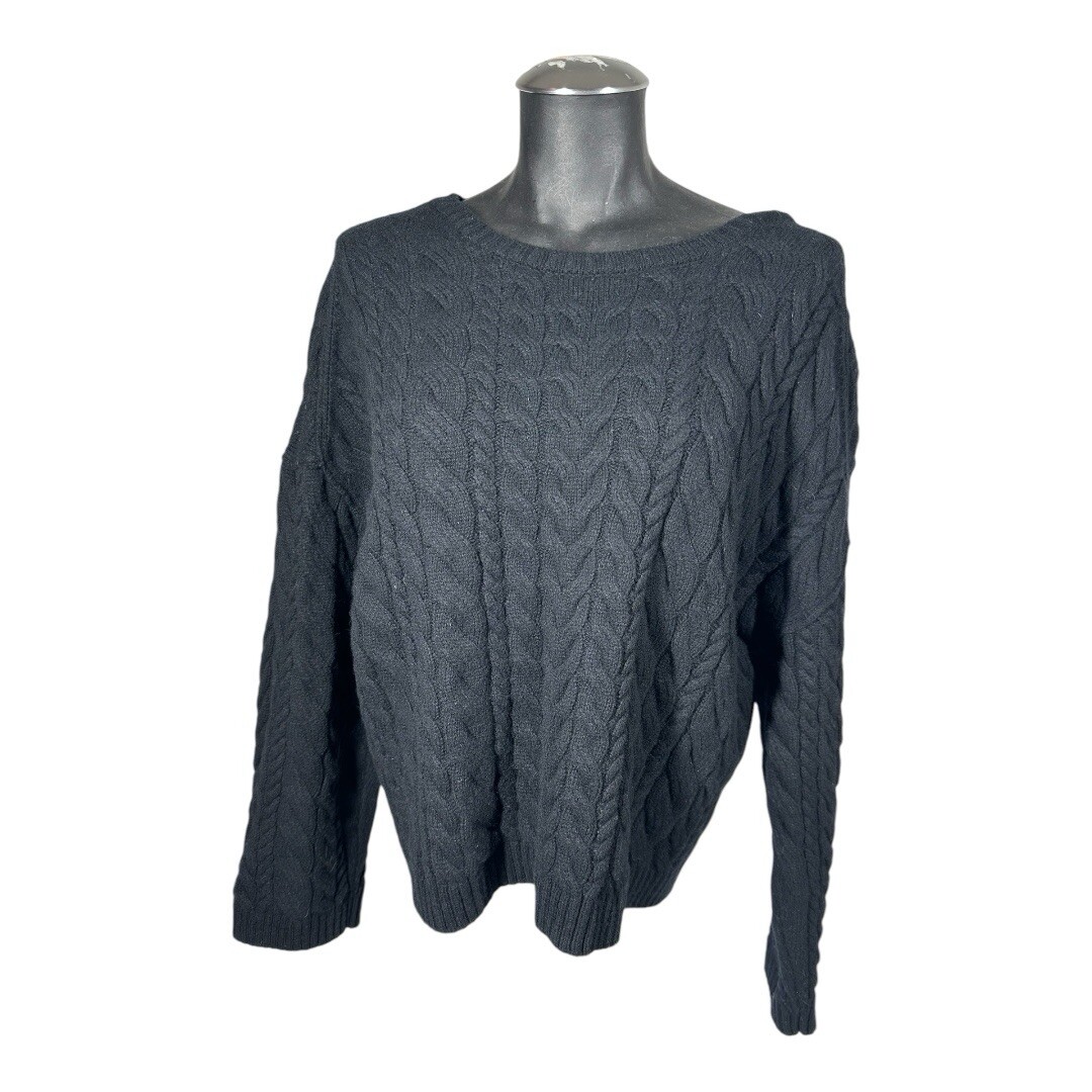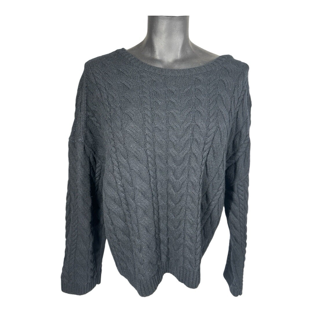 как выглядит J. Crew Tie Back Cable Knit Sweater Womens Large Black Crewneck Wool BV361 фото