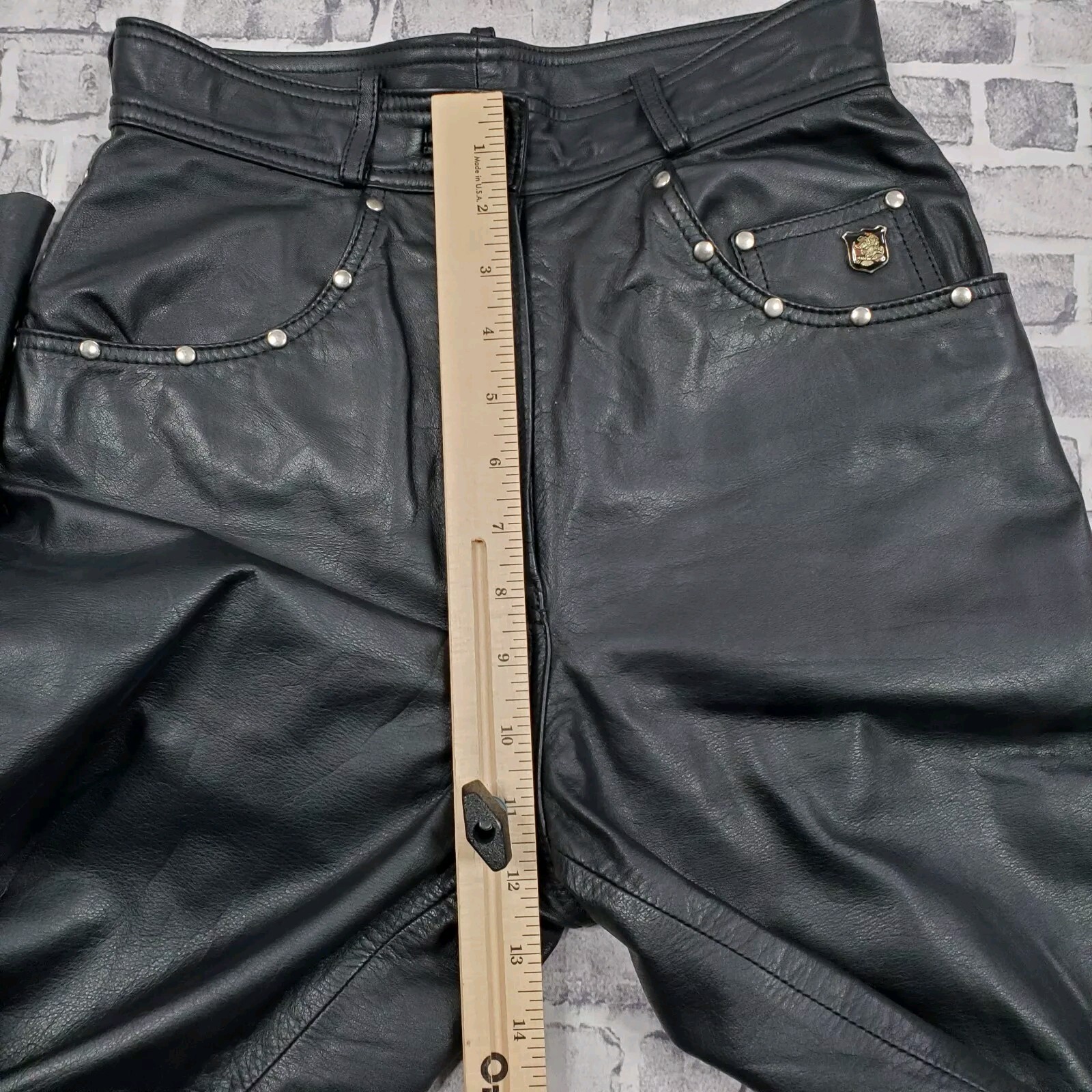 Vtg Harley Davidson Motorcycle Leather Pants Womens 36/6 26x30 Biker Studs Black
