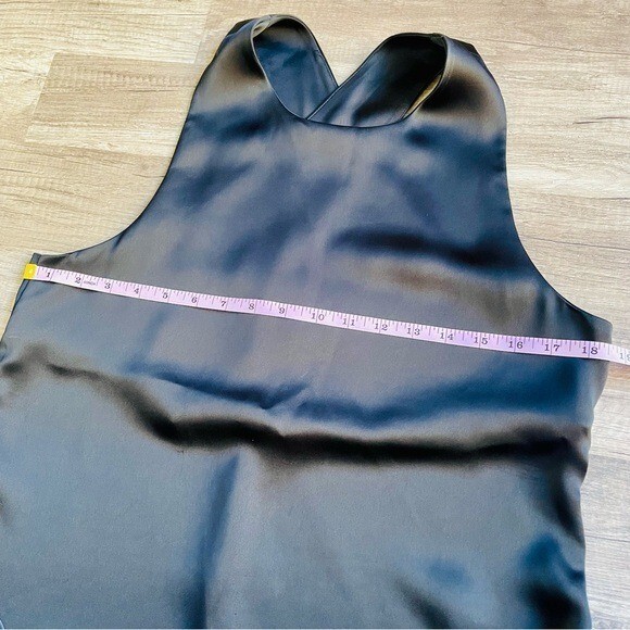 как выглядит Theory Black Satin Crisscross Slip Dress Medium фото