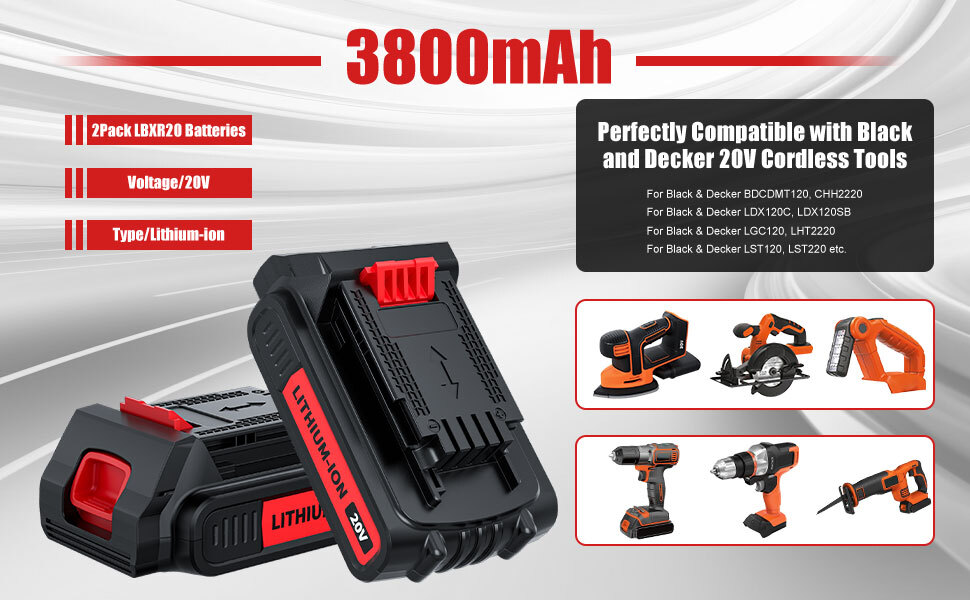 2Pack 20V Lithium-ion Battery for BLACK DECKER 20 Volt LBXR20 LBX20 LB20 1500mAh